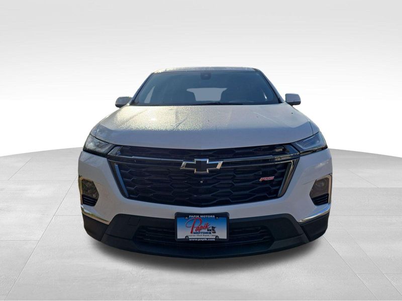 Discover the Thrilling 2022 Chevrolet Traverse RS at Papik Motors Inc in Luverne. Looking for a midsize SUV that combines family-friendly space with sporty performance? The 2022 Chevrolet Traverse RS is the ultimate choice for Luverne drivers seeking adventure without compromise. This bold RS trim stands out with its aggressive blacked-out styling, 20-inch aluminum wheels, and sleek LED headlights, turning heads on every drive. Powered by a robust 3.6L V6 engine delivering 310 horsepower, it offers seamless acceleration and towing up to 5,000 pounds—perfect for weekend getaways or hauling gear. Inside, enjoy premium features like leather-appointed seats, a Bose premium audio system, and a spacious cabin seating up to eight with ample cargo room for all your needs. What sets the 2022 Chevy Traverse RS apart are its key benefits: advanced Chevy Safety Assist with automatic emergency braking, lane-keeping assist, and blind-spot monitoring for peace of mind on Minnesota roads. Stay connected with an intuitive 8-inch touchscreen supporting wireless Apple CarPlay and Android Auto, plus available Super Cruise hands-free driving. Fuel efficiency reaches up to 27 MPG highway, balancing power and practicality for daily commutes or family road trips from Luverne. Ready to experience the excitement? Visit Papik Motors Inc in Luverne today to explore our inventory of 2022 Chevrolet Traverse