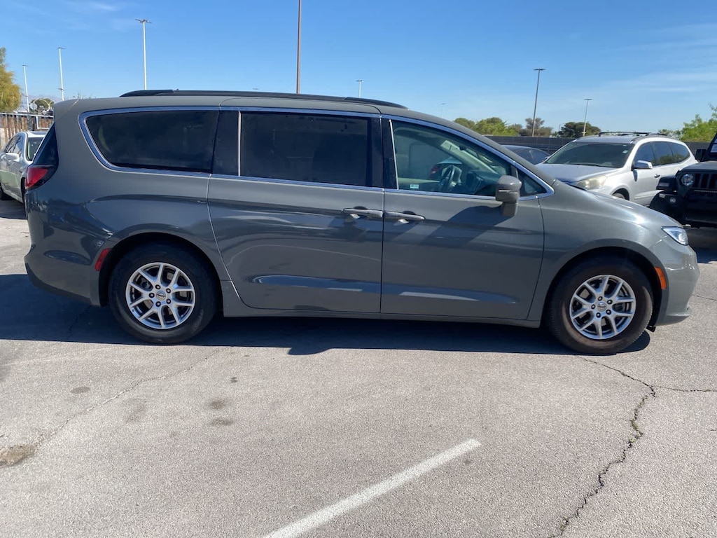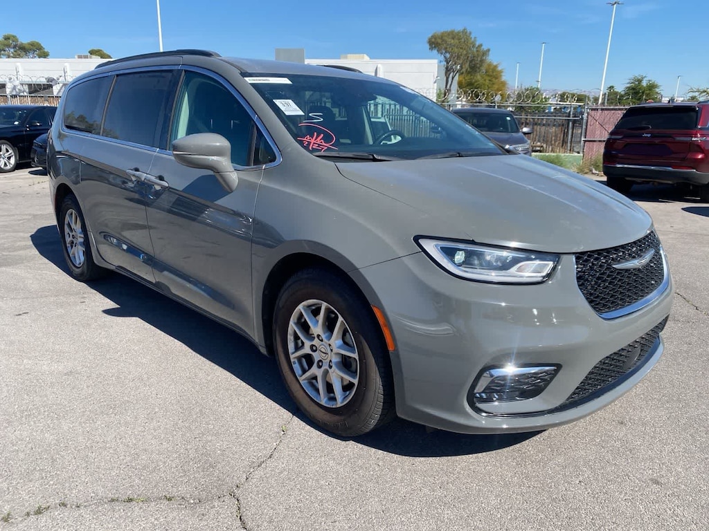 Drive our One Owner 2022 Chrysler Pacifica Touring L Minivan and turn up the volume on your next family adventure in Ceramic Gray! Motivated by a 3.6 Liter Pentastar V6 serving up 287hp matched to a 9 Speed Automatic transmission for noteworthy performance. This Front Wheel Drive minivan also rewards you with composed handling and the ability to score nearly 28mpg on the highway. Its bold design will bring a smile to your face with LED lighting, fog lamps, a Stow n Place roof rack, alloy wheels, power-sliding side doors, and a power liftgate. Add style and substance to this marvelous minivan! Our Touring L cabin offers further upscale cues, including heated cloth front seats, eight-way power for the driver, Stow n Go second and third rows, a heated TechnoLeather steering wheel, tri-zone automatic climate control, and impressive versatility for cargo and gear. Making mobile connections is simple with Uconnect 5 technology, a 10.1-inch touchscreen, Android Auto/Apple CarPlay, Bluetooth, and a six-speaker sound system. Chrysler helps keep you and your family out of harms way with intelligent safety measures such as automatic emergency braking, a blind-spot monitor, a backup camera, lane-departure warning, adaptive cruise control, and more. Our Pacifica Touring L is eager to please with features like those! Save this Page and Call for Availability. We Know You Will Enjoy Your Lithia Sahara Chrysler Dodge Ram L0517 Test Drive Towards Ownership! Must finance with Chrysler Capital for all discounts to be applied.