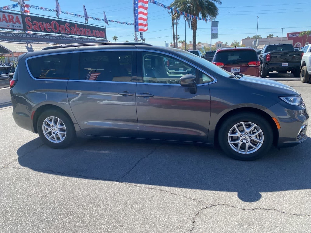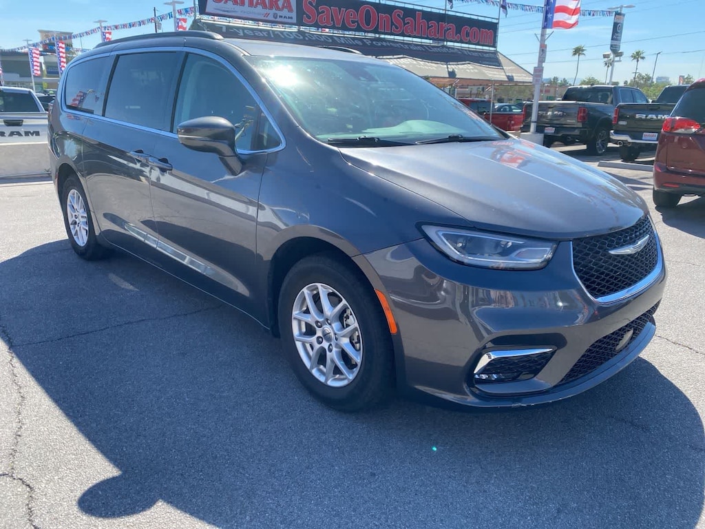 Drive our One Owner 2022 Chrysler Pacifica Touring L Minivan and turn up the volume on your next family adventure in Granite Crystal Metallic! Motivated by a 3.6 Liter Pentastar V6 serving up 287hp matched to a 9 Speed Automatic transmission for noteworthy performance. This Front Wheel Drive minivan also rewards you with composed handling and the ability to score nearly 28mpg on the highway. Its bold design will bring a smile to your face with LED lighting, fog lamps, a Stow n Place roof rack, alloy wheels, power-sliding side doors, and a power liftgate. Add style and substance to this marvelous minivan! Our Touring L cabin offers further upscale cues, including heated cloth front seats, eight-way power for the driver, Stow n Go second and third rows, a heated TechnoLeather steering wheel, tri-zone automatic climate control, and impressive versatility for cargo and gear. Making mobile connections is simple with Uconnect 5 technology, a 10.1-inch touchscreen, Android Auto/Apple CarPlay, Bluetooth, and a six-speaker sound system. Chrysler helps keep you and your family out of harms way with intelligent safety measures such as automatic emergency braking, a blind-spot monitor, a backup camera, lane-departure warning, adaptive cruise control, and more. Our Pacifica Touring L is eager to please with features like those! Save this Page and Call for Availability. We Know You Will Enjoy Your Lithia Sahara Chrysler Dodge Ram L0517 Test Drive Towards Ownership! Must finance with Chrysler Capital for all discounts to be applied.
