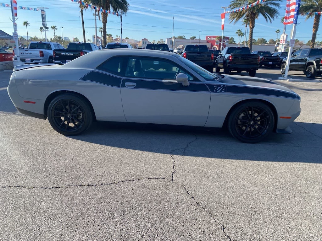 Our One Owner, Accident Free 2022 Dodge Challenger R/T Coupe with the Plus Pack helps keep you on track for tremendous thrills in Smoke Show! Powered by a 5.7 Liter HEMI V8 delivering 375hp paired to a 6 Speed TREMEC Manual transmission with our packages track-only line-lock feature. Put those ponies to good use with the performance suspension, braking, and steering systems, and this Rear Wheel Drive coupe also scores nearly 23mpg on the highway. Our Challengers bold and muscular style brakes through the clutter with a performance hood with a functional scoop, 20-inch wheels, two-piece center caps, fog lamps, LED split tail lamps, an SRT front splitter, and active exhaust with bright-tipped outlets. Refined amenities and inspirational design inform our R/T cabin, along with our packages heated Nappa leather/Alcantara front seats, a heated performance-style power steering wheel, a premium-stitched instrument panel, ambient door-panel lighting, and an enhanced Uconnect infotainment system. Its an intelligent setup with an 8.4-inch touchscreen, Alpine audio, Performance Pages, WiFi compatibility, voice command, Android Auto, Apple CarPlay, and Bluetooth. Dodge supports your safety with parking sensors, a rearview camera, multi-stage airbags, hill-start assist, electronic stability/traction control, tire pressure monitoring, and more. Choose our Challenger R/T to start chasing your dreams today! Save this Page and Call for Availability. We Know You Will Enjoy Your Lithia Sahara Chrysler Dodge Ram L0517 Test Drive Towards Ownership! Must finance with Chrysler Capital for all discounts to be applied.