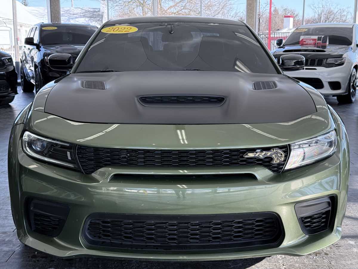 Our 2022 Dodge Charger SRT Hellcat Widebody Sedan in F8 Green is here to scorch the pavement with blistering acceleration! Motivated by a SuperCharged 6.2 Liter HEMI V8 serving up 717hp for a paddle-shifted 8 Speed Automatic transmission for a maximum velocity of 196mph. More like a Rear Wheel Drive rocket, this sport sedan also flaunts a competition suspension, Brembo brakes, line lock, and launch control, and it cruises the highway at nearly 21mpg. Our Charger is quick to get attention, too, with its extreme widebody kit, SRT performance hood, Satin Black rear spoiler, and low-gloss black wheels. You'll be comfortable whether you're commuting or carving the corners in our SRT Hellcat cabin. It shows off leather heated/ventilated front and heated rear seats, a leather heated SRT power steering wheel, dual-zone automatic climate control, and bright pedals. Uconnect® technology takes care of your infotainment needs with an 8.4-inch touchscreen, SRT Performance Pages, WiFi compatibility, Android Auto®, Apple CarPlay®, Bluetooth®, and Alpine audio. Dodge helps you stay out of harm's way with a backup camera, a blind-spot monitor, rear parking sensors, rear cross-traffic alert, stability/traction control, tire-pressure monitoring, and even SRT airbags. Drive our Charger SRT Hellcat Widebody, and dare to dominate! Save this Page and Call for Availability. We Know You Will Enjoy Your CarDome Auto Sales Test Drive Towards Ownership!