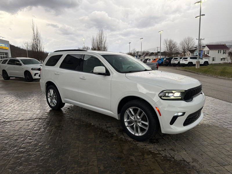 Experience power, style, and versatility with this 2022 Dodge Durango AWD GT Plus in striking white. Designed for families and adventurers alike, this Durango features a responsive Pentastar 3.6L V6 engine paired with an 8-speed shiftable automatic transmission and full-time AWD for confident handling in all conditions. Enjoy sun filled drives with the power sunroof open. Premium comfort with heated leather-trimmed seats, power adjustments for both driver and passenger, and a heated steering wheel. Stay connected with the 8.4-inch Uconnect infotainment system, Apple CarPlay/Android Auto, Bluetooth, and multiple USB/USB-C outlets. Safety is top priority, with adaptive cruise control, lane keeping assist, blind spot monitor, etc. Three rows of seating, independent rear air conditioning, and split-folding seats provide room for everyone and everything. This Durango is ready for your next road trip or daily drive-schedule your test drive today!