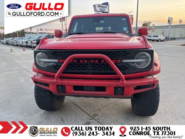 Elevate your off-road adventures with the 2022 Ford Bronco Wildtrak. Paint to match fenders, hardtop, and finished off with a nice lift with wheels and tires to go with it. This rugged and capable SUV is engineered to conquer any terrain, delivering unparalleled performance and uncompromising style. Packed with a host of premium features, the Bronco Wildtrak is designed to elevate your driving experience. The Bronco Wildtrak's striking exterior in Red commands attention, while the spacious and well-appointed interior offers a premium driving experience. Indulge in the premium B&O sound system, stay connected with the built-in navigation, and let the 360-degree camera assist you with parking and maneuvering. Elevate your adventures and make a statement with the 2022 Ford Bronco Wildtrak. This exceptional SUV is the perfect blend of rugged capability and refined luxury. Visit our showroom today to experience the Bronco Wildtrak firsthand and discover how it can enhance your driving experience.