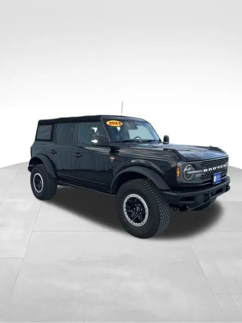 Discover the 2022 Ford Bronco Badlands, a rugged SUV designed for adventure and everyday driving alike. With a sleek Shadow Black exterior and a refined Black Onyx interior, this used model offers a perfect blend of style and capability. Powered by a robust 2.7-liter twin-turbo V6 engine producing 315 horsepower and 410 lb-ft of torque, it combines impressive performance with fuel efficiency of 17 mpg in city and highway driving. The 10-speed automatic transmission and 4WD system ensure you’re prepared for challenging terrains and unpredictable conditions. With just under 40,000 miles, this vehicle promises reliability and durability, making it an ideal choice for those seeking both utility and excitement. Inside, comfort and connectivity abound with features like Apple CarPlay, Bluetooth, satellite radio readiness, and a Wi-Fi hotspot, all accessible via an intuitive 8-inch touchscreen display. Convenience is key with keyless entry, push-start ignition, and a backup camera that provides added safety and ease of parking. The 2022 Ford Bronco Badlands is equipped with advanced safety and security features to keep you protected on every journey. Its four-wheel ABS system offers confident stopping power, while emergency braking preparation adds an extra layer of safety. Auto-locking power door locks enhance security, and the electronic parking brake with auto-off functionality ensures ease of use and peace of mind. These features work together to provide a secure driving environment, whether navigating city streets or off-road trails. Stay connected and entertained with the Ford Bronco’s impressive technology suite. FordPass Connect allows seamless smart device app compatibility, including remote engine start for added convenience. The 8-inch touchscreen infotainment system serves as the command center for audio, navigation, and app integration, featuring a touchscreen display and six speakers for immersive sound. Connected in-car apps through the app marketplace allow customization and access to a variety of services. The vehicle supports electronic messaging assistance with a read function, ensuring you stay informed without distraction. Auxiliary audio inputs include USB and iPod/iPhone compatibility, providing versatile options for your favorite music on the go. Designed for off-road enthusiasts and daily drivers alike, the Ford Bronco Badlands features an electronic high-low 4WD selector and a part-time 4WD system with an on-demand setting, allowing you to switch driving modes based on terrain. Front and rear locking differentials provide enhanced traction in difficult conditions, ensuring you maintain control when navigating challenging trails. The tuned off-road suspension system absorbs shocks and enhances stability, delivering a smooth ride over rugged terrain and rough surfaces. These performance features make the Bronco Badlands a true capable performer, ready to tackle your next adventure. Wild styling awaits with our Bronco's LED lighting, upgraded bumpers, and alloy wheels. You'll also love the fully removable top and doors that deliver amazing open-air thrills. Our Badlands cabin is easy to clean after a day in the dirt, thanks to supportive marine-grade seats and a rubberized washout flooring. More comfort and convenience come with a leather-wrapped steering wheel, single-zone climate control, keyless access, and pushbutton ignition. First-class Ford technology is on your side with an 8-inch driver display, an 8-inch touchscreen, wireless Android Auto/Apple CarPlay, WiFi compatibility, Bluetooth, and six-speaker audio.