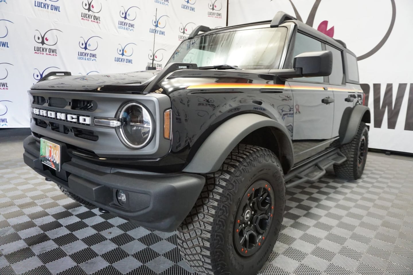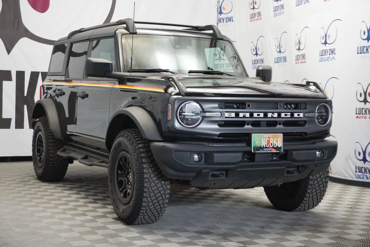 Buy our bold one owner 2022 Ford Bronco Big Bend 4 Door 4X4 with low miles in Shadow Black and begin your adventures with confidence! Powered by a TurboCharged 2.3 Liter EcoBoost 4 Cylinder generating 300hp connected to a 7 Speed Manual transmission for unrelenting capability. You'll also appreciate the multimode terrain management system and high-performance suspension in this Four Wheel Drive SUV, which is a top-notch trail performer that returns nearly 22mpg on the highway. Turn heads on the pavement or off thanks to our Bronco's rugged design with LED lighting, fog lamps, alloy wheels, and a fully removable top and doors. Our Big Bend cabin is built for versatility and comfort with supportive cloth seats, a leather-wrapped steering wheel, single-zone climate control, keyless access, pushbutton ignition, and clever storage solutions. As for intelligent technology, you can take on your days with an 8-inch driver display, a SYNC 4 infotainment system, an 8-inch touchscreen, Android Auto/Apple CarPlay, WiFi compatibility, Bluetooth, and a six-speaker sound system. Pursue your dreams with peace of mind knowing Ford supplies standard features such as a backup camera, automatic emergency braking, ABS, stability/traction control, and a Safety Canopy airbag system. Saddle up our Bronco Big Bend, and start having more fun! Save this Page and Call for Availability. We Know You Will Enjoy Your Lucky Owl Auto Sales Test Drive Towards Ownership!