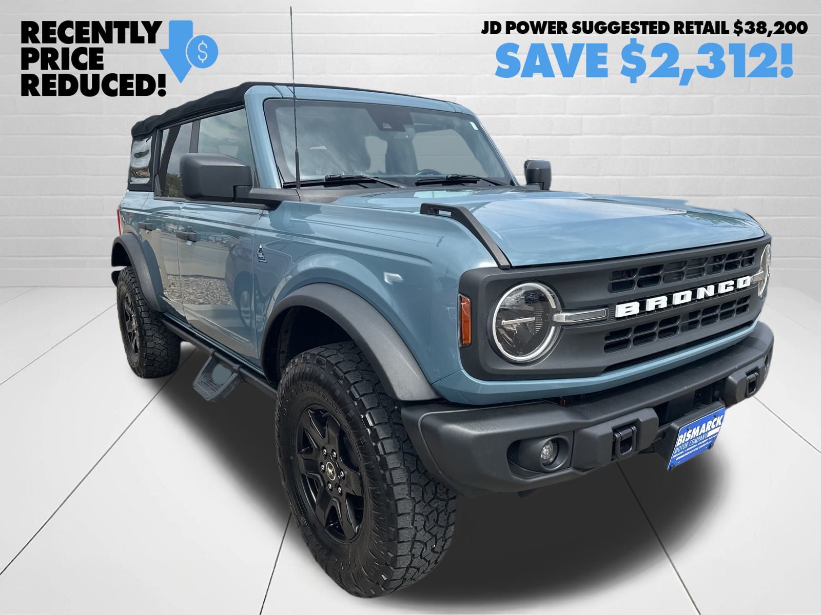At Bismarck Motor Company, we believe car buying should be transparent and pressure-free. Every vehicle we sell is thoroughly inspected, competitively priced, and comes with our commitment to honest service. No games, no gimmicks—just quality vehicles and people who care about getting you on the road with confidence. This 2022 Ford Bronco Black Diamond is a true off-road champion, ready to conquer any terrain you encounter. Equipped with a powerful 2.3L EcoBoost I-4 engine and a 10-speed automatic transmission, this Bronco delivers exceptional performance and capability, with 4-wheel drive for unparalleled traction and control. The Bronco's rugged exterior in a stunning Green color exudes confidence and capability, while the well-appointed interior offers a premium driving experience. With a city/highway fuel economy of 18 mpg, this Bronco balances power and efficiency to keep you moving forward, whether you're conquering the trails or navigating the daily commute. Designed to tackle the toughest terrain, the Bronco Black Diamond is equipped with a suite of off-road-focused features, including the 10-speed automatic transmission with Trail Control and Trail Turn Assist, as well as 17-inch black high-gloss-painted aluminum wheels that provide the perfect blend of style and capability. This 2022 Ford Bronco Black Diamond is a true off-road icon, combining rugged capability, premium features, and exceptional value. Experience the thrill of the trail and the confidence of owning a vehicle that's built to conquer any adventure.