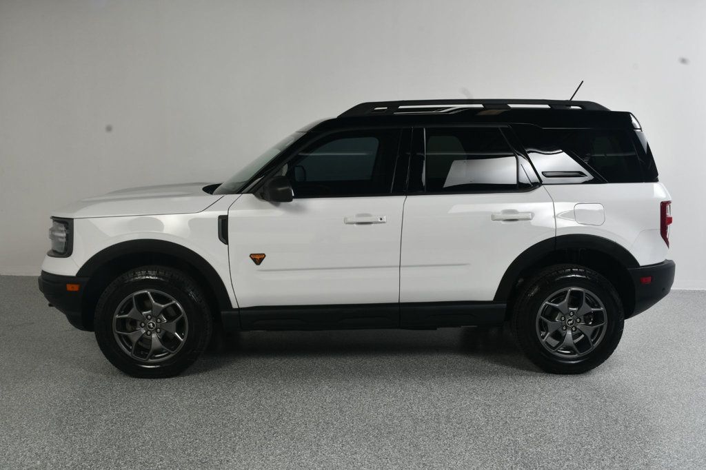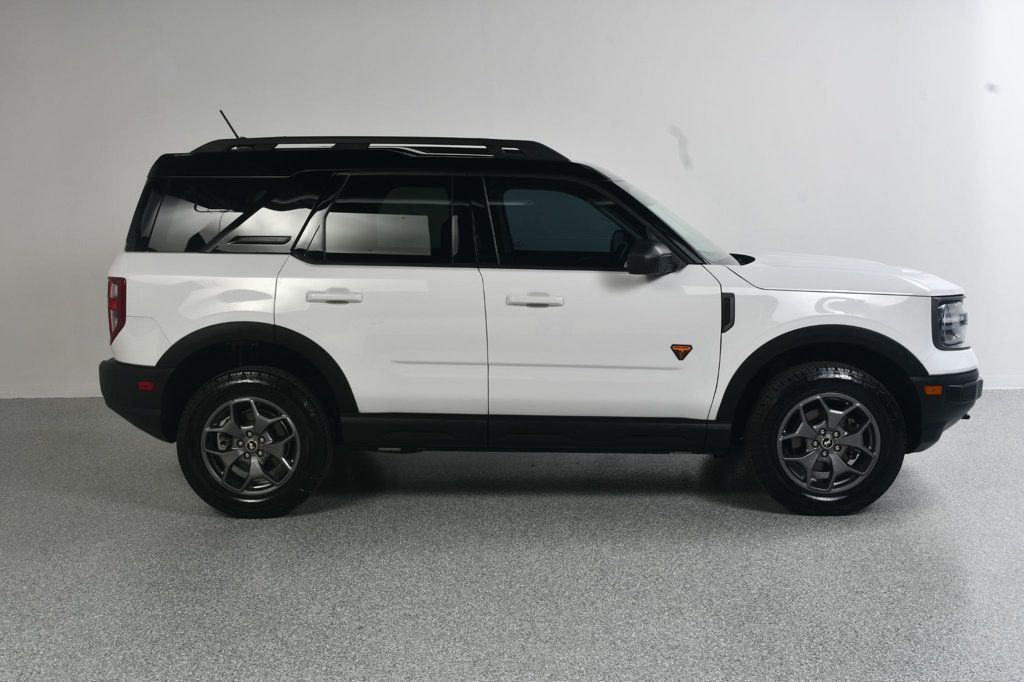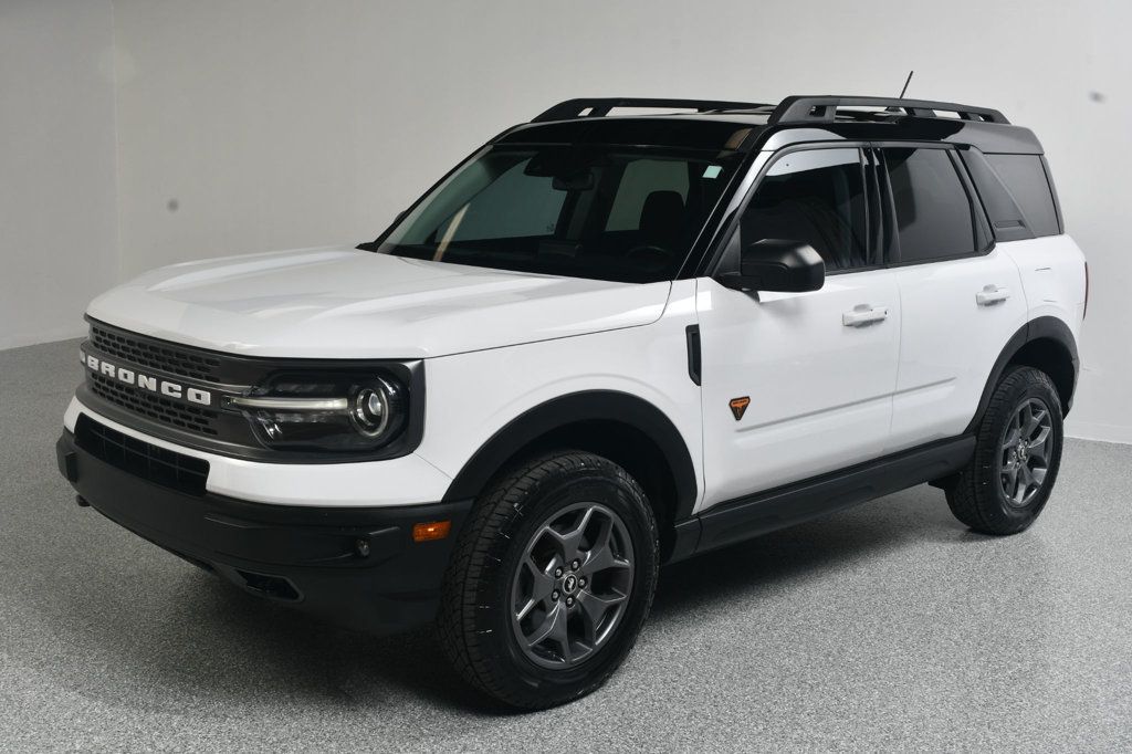 2022 Ford Bronco Sport Badlands--4 Cylinder--White SUV. Only 31,xxx one owner miles. Oxford White with Ebony Roast Leather. Carfax certified no accident history. 2.0 LTR 4 Cylinder engine. Premium package. Black roof. Heated seats. Heated steering wheel. Dual zone auto temp AC. Band & Olufsen sound system with 10 speakers/HD Radio. Remote start. 8 way power driver's seat. Rear parking sensors. Ford Co-Pilot 360. Great service history. New OE tires. 2 remote keys. Powertrain warranty in effect until 7/5/27 or 60K miles.