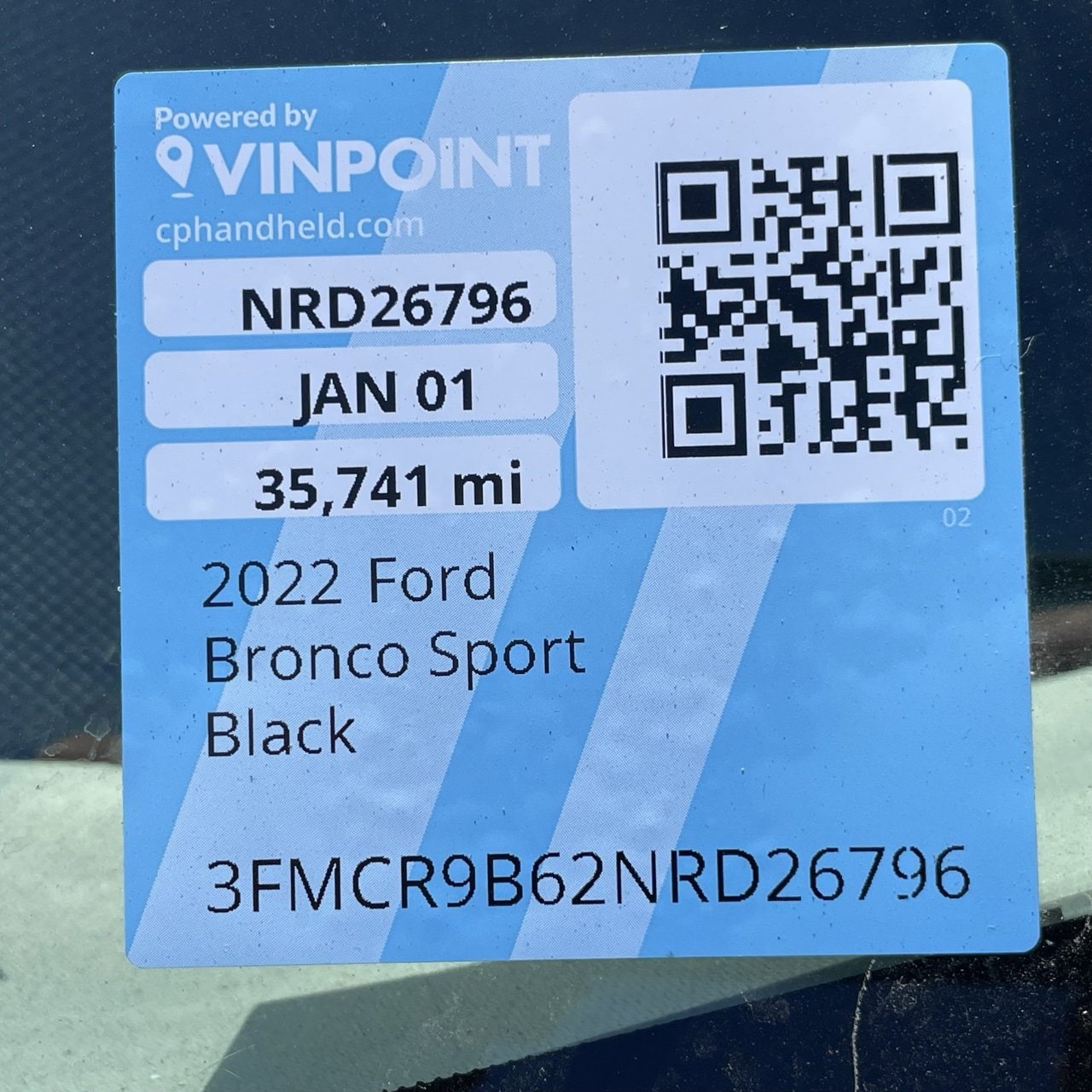 Bronco Sport Big Bend, 4D Sport Utility, 1.5L EcoBoost, 8-Speed Automatic, 4WD, Shadow Black, Ebony Cloth. Equipment Group 200A. This is a description of the vehicle. It is a used 2022 Ford Bronco Sport Big Bend with an EcoBoost engine and 8-speed automatic transmission. The vehicle is in Shadow Black with Ebony Cloth interior. Odometer is 35,749 miles.