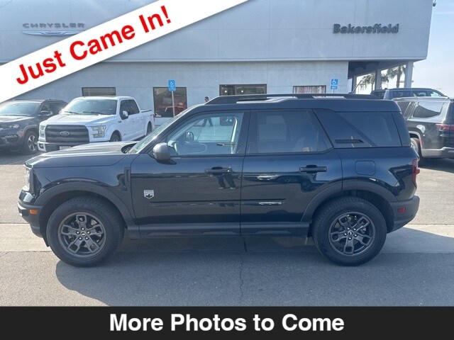 Welcome to Bakersfield Chrysler Jeep! Alto Blue Metallic Tinted Clearcoat 2022 Ford Bronco Sport Big Bend 8-Speed Automatic 1.5L EcoBoost One Owner Carfax, Bronco Sport Big Bend, 4D Sport Utility, 1.5L EcoBoost, 8-Speed Automatic, 4WD, Alto Blue Metallic Tinted Clearcoat, Ebony Cloth, AM/FM radio: SiriusXM, Auto High-beam Headlights, Brake assist, Class II Trailer Tow Package w/Trailer Sway Control, Convenience Package, Electronic Stability Control, Equipment Group 200A, Front Bucket Seats, Front Driver & Passenger Seatback Zipper Pockets, Fully automatic headlights, Heated Front Bucket Seats, Intelligent Access (Lock/Unlock), Leather-Wrapped Steering Wheel, LED Fog Lamps, Panic alarm, Rear Parking Sensors, Remote keyless entry, Security system, Split folding rear seat, SYNC 3 Communications & Entertainment System, Universal Garage Door Opener (UGDO), Wheels: 17" Carbonized Gray-Painted Aluminum, Wireless Charging Pad. CARFAX One-Owner. 25/28 City/Highway MPG. Pricing and availability may vary based on a variety of factors, including options, dealer discount, specials, fees, and financing qualifications. See dealer for qualifications and complete details.