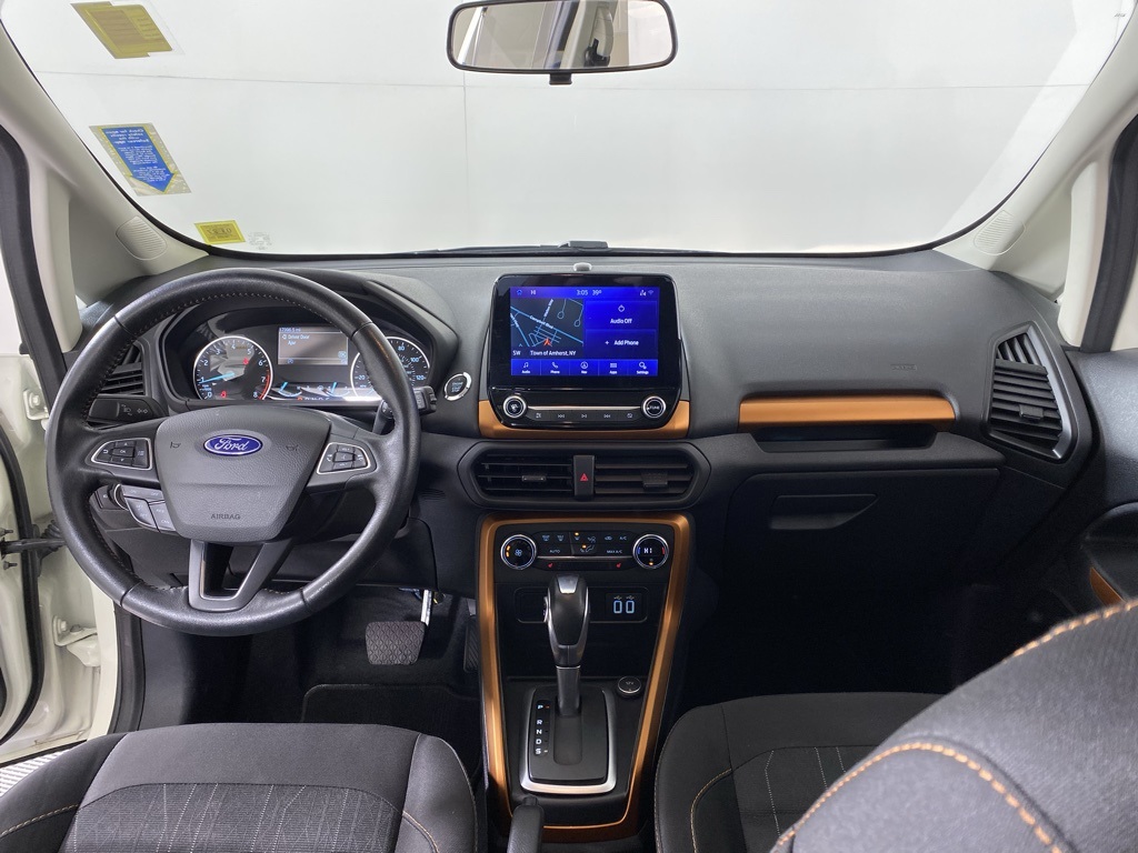 CARFAX One-Owner. Clean CARFAX. 2022 Ford EcoSport SE 110V/150W AC Power Outlet, 4-Wheel Disc Brakes, 7 Speakers, ABS brakes, Ambient Lighting, BLIS Blind Spot Information System, Equipment Group 200A, Leather-Wrapped Steering Wheel, Orange Instrument Panel Appliques, Power moonroof, SE Appearance Package, SE Convenience Package, SiriusXM Traffic & Travel Link, SYNC 3 Communications & Entertainment System, SYNC 3 Communications & Entertainment System w/47B, Unique Cloth Heated Front Bucket Seats w/47A, Wheels: 17" Shadow Silver Aluminum. Diamond White. 6-Speed Automatic 4WD. 23/29 City/Highway MPG. Coming Soon! This vehicle has recently been acquired and we are currently processing the paperwork, servicing the vehicle, and taking more photos. It will be available for sale and delivery shortly. See a store manager for specific details on the current status. IMPORTANT RECALL INFORMATION. Some vehicles may be subject to unrepaired safety recalls. Go to www.safercar.gov to learn whether an individual vehicle is subject to an open recall.