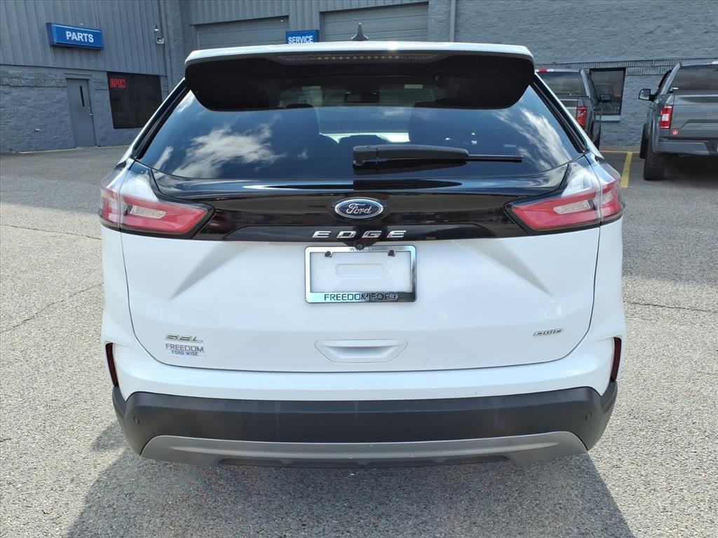 AWD. This 2022 Oxford White Ford Edge SEL AWD is well equipped and includes these features and benefits: Equipment Group 201A, Ford Co-Pilot360 Assist+ (Adaptive Cruise Control w/Stop & Go, Connected Built-In Navigation, Evasive Steering Assist, and Lane Centering), AWD, 3.80 Axle Ratio, 4-Wheel Disc Brakes, 6 Speakers, ABS brakes, ActiveX Seating Material Heated Bucket Seats, Air Conditioning, Alloy wheels, AM/FM radio: SiriusXM with 360L, Auto High-beam Headlights, Auto-dimming Rear-View mirror, Automatic temperature control, Brake assist, Bumpers: body-color, Compass, Delay-off headlights, Driver door bin, Driver vanity mirror, Dual front impact airbags, Dual front side impact airbags, Dual front impact airbags, Dual front side impact airbags, Electronic Stability Control, Emergency communication system: SYNC 4 911 Assist, FordPass Connect, Four wheel independent suspension, Front anti-roll bar, Front Bucket Seats, Front Center Armrest w/Storage, Front dual zone A/C, Front License Plate Bracket, Front reading lights, Fully automatic headlights, Heated door mirrors, Heated front seats, Illuminated entry, Knee airbag, Low tire pressure warning, Occupant sensing airbag, Outside temperature display, Overhead airbag, Overhead console, Panic alarm, Passenger door bin, Passenger vanity mirror, Power door mirrors, Power driver seat, Power passenger seat, Power steering, Power windows, Radio: AM/FM Stereo/MP3 Capable, Rear anti-roll bar, Rear Parking Sensors, Rear reading lights, Rear seat center armrest, Rear window defroster, Rear window wiper, Remote keyless entry, SiriusXM w/360L, Speed control, Speed-Sensitive Wipers, Split folding rear seat, Spoiler, Steering wheel mounted audio controls, SYNC 4A w/Enhanced Voice Recognition.