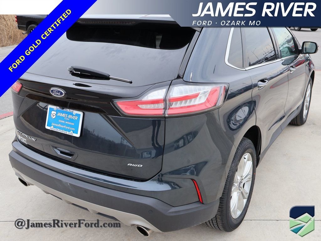 @JamesRiverFORD our local, family-owned dealership is focused on making your online experience the best yet! Just off HWY 65 and HWY CC, this 2022 Ford Edge Titanium AWD is painted in Stone Blue Metallic and is powered by a Twin-Scroll 2.0L EcoBoost Engine. This Edge is built with the following packages: Equipment Group 300A. In addition, below are upgrades and added options. At James River Ford, we believe buying a car should be as fun and exciting as driving one! No stress, no boring sales talk—just great vehicles, great deals, and a team that actually cares. Whether you're looking for a rugged F-150, a head-turning Mustang, or an SUV with room for the whole crew, we've got a huge selection of quality new and pre-owned vehicles—all priced to move faster than a Mustang on the open road. We proudly serve Ozark, Springfield, Nixa, Branson, Republic, Rogersville, Battlefield, Marshfield, Willard, Strafford, Bolivar, Aurora, Hollister, Clever, Highlandville, Forsyth, and beyond—bringing big-city deals with small-town service to Southwest Missouri. No pressure, no hassle—just great cars, great deals, and a team that's here to make your car-buying experience actually enjoyable.
