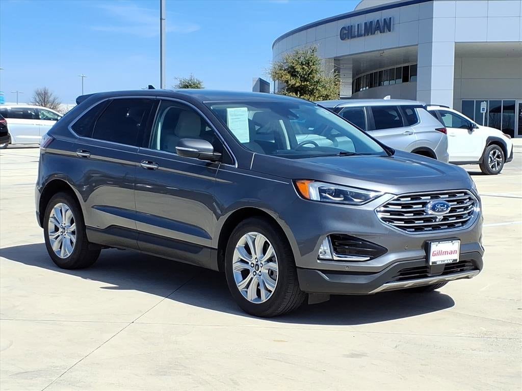 Gillman's Lifetime Engine Warranty lasts as long as you own your vehicle - free with the Gillman Pre-Owned Promise. If the vehicle isn't right for you, return it in purchase condition within 2 days or 200 miles as part of our Happy-Driving Guarantee. (Valid on vehicles under 90,000 miles and less than 7 years old). Drive in comfort and style with this 2022 Ford Edge Titanium AWD Crossover in sleek gray. With advanced features like Wireless Apple CarPlay and Android Auto, a massive 12-inch touchscreen, Bang & Olufsen premium audio, and built-in FordPass Connect with Wi-Fi hotspot, you'll stay connected wherever you go. Enjoy luxury touches including leather-trimmed seats, heated front seats and steering wheel, and a panoramic safety suite featuring front/rear parking sensors, rear cross-traffic alert, lane keeping assist, and automatic emergency braking with pedestrian detection. The power liftgate and remote start add everyday convenience, while the EcoBoost turbo engine paired with AWD delivers confident, efficient performance. Experience elevated driving-schedule your test drive today! All vehicles subject to prior sale. We are not responsible for typographical errors and may change information without notice. Photos may not depict the actual vehicle. Tax, title, and license fees not included. Dealer Discount available to all buyers.Vehicles purchased from Gillman Automotive Group include a Bring It Back Guarantee: return the vehicle in purchase condition within two days or 200 miles. New current-model-year vehicles and qualifying pre-owned vehicles (under 90,000 miles and less than 7 years old) are eligible. Guarantee is non-transferable and has no cash value. Lifetime Warranty available on select pre-owned vehicles. See dealer for details; restrictions may apply.