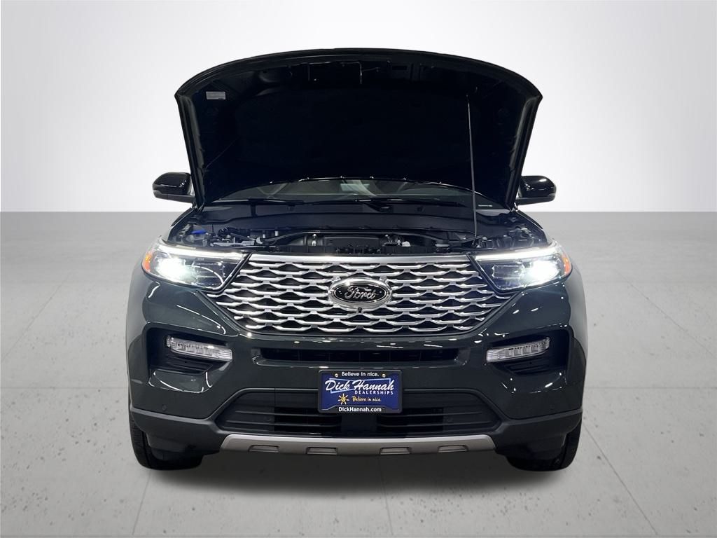 Forged Green Metallic 2022 Ford Explorer Platinum 4WD 3.0L EcoBoost V6 10-Speed Automatic. Clean Carfax. Powerfold 3rd Row Seat. LED Headlamps. 360-Degree Camera. Rain Sensing Wipers. 10.1" LCD Capacitive Portrait Touchscreen. Heated Front Seats. Power Liftgate. Premium Technology Package. Radio: B&O Sound System by Bang & Olufsen. SYNC 3 Communications & Entertainment System. Ventilated Front Seats. Voice-Activated Touchscreen Navigation System. Peace of mind warranty: Rest easy - you're covered for 12 months or 12,000 miles on many of your vehicle maintenance items including Battery - Brake Pads - Belts & Hoses - Battery - Brake Pads - Battery - Rebuilt - Parts only - Missing. In addition, each Dick Hannah used vehicle comes with a powerful 3 month/3,000 mile power train warranty which covers Engine - Transmission – Drivetrain. You can breathe easy knowing that your unexpected repairs will be covered. See dealership for full warranty details.