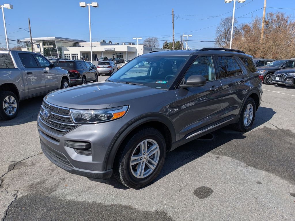 Introducing the 2022 Ford Explorer XLT – a versatile and capable SUV that's ready to elevate your driving experience. With its sleek gray exterior and powerful 2.3L EcoBoost I-4 engine paired with a 10-speed automatic transmission and 4WD, this Explorer is built to conquer the road ahead. This Explorer XLT is packed with features that cater to your needs. Enjoy the convenience of the SYNC 3 Communications & Entertainment System, dual-zone automatic climate control, and a power liftgate. Stay connected with the FordPass Connect technology, and stay safe with advanced safety features like emergency communication system, blind-spot monitoring, and rear parking sensors. The spacious interior offers seating for up to seven, with a 35/30/35 second-row bench and a split-folding third row. Upgrade your comfort with heated front seats, a power driver's seat, and a leather-wrapped steering wheel. The 18-inch silver-painted aluminum wheels add a touch of style to this capable SUV. With an EPA-estimated 20 city/27 highway mpg, the 2022 Ford Explorer XLT delivers impressive efficiency without compromising performance. Whether you're embarking on a family adventure or tackling your daily commute, this Explorer is ready to take you there. Experience the versatility and refinement of the 2022 Ford Explorer XLT. Visit our showroom today and let us demonstrate how this SUV can elevate your driving experience. We're confident you'll be impressed by its exceptional blend of capability, technology, and comfort.