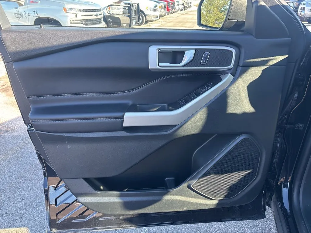Discover the 2022 Ford Explorer XLT, a versatile and stylish SUV that combines rugged capability with modern convenience. With only 18,112 miles on the odometer, this used vehicle boasts a striking Black Metallic exterior complemented by a sleek Ebony interior. Powered by a turbocharged 2.3-liter four-cylinder engine delivering 300 horsepower and 310 lb-ft of torque, it offers a spirited driving experience. The 10-speed automatic transmission ensures smooth shifts, while the advanced 4WD system provides confidence in diverse driving conditions. This Explorer is designed for family adventures and daily commutes alike, with seating for six across three rows and a range of amenities that enhance comfort and connectivity. Key features include Apple CarPlay, Bluetooth, a backup camera, blind spot monitoring, lane keep assist, collision warning, cross traffic alert, heated seats, keyless entry, push start, rear A/C, satellite radio readiness, and a Wi-Fi hotspot, making every journey enjoyable and connected. This used Ford Explorer XLT also prioritizes safety and security with a comprehensive suite of advanced features. Dual front knee airbags provide added protection in the event of a collision, while rear parking sensors and a rearview camera system assist with maneuvering in tight spaces. The vehicle is equipped with four-wheel ABS, cornering brake control, and emergency braking preparation to enhance braking performance. Anti-lockout power door locks and auto-locking mechanisms improve security, complemented by programmable safety keys for added control. Hill descent assist ensures confident off-road driving, and the off-road driving assist system further enhances capability, making this SUV a dependable choice for both urban and rugged terrains. This model is equipped with essential safety features designed to protect occupants and prevent accidents. Dual front knee airbags and rear parking sensors contribute to occupant safety, while ABS with cornering brake control ensures stable braking in various conditions. Emergency braking preparation and hill descent assist provide additional support during challenging drives. The vehicle’s anti-lockout power door locks, auto-locking system, and programmable safety key offer peace of mind, securing your vehicle when unattended. Rear camera washer maintains clear visibility during reverse maneuvers, completing a robust safety package tailored for confident driving.