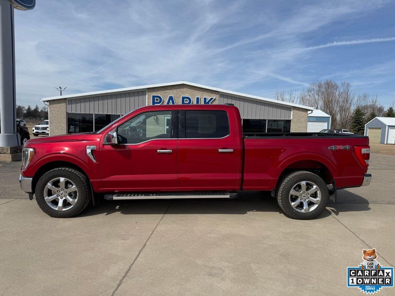 The 2022 Ford F-150 Lariat is a top-tier pickup truck that offers unparalleled performance, capability, and luxury features. If you're in the market for a reliable and powerful vehicle, look no further than Papik Motors Inc in Luverne, your trusted local Ford dealership. The F-150 Lariat boasts a robust 3.5L EcoBoost engine, producing 450 horsepower and 510 lb.-ft. of torque, making it ideal for towing and hauling heavy loads. With its advanced four-wheel-drive system and high-strength steel frame, this truck can handle even the toughest tasks with ease. The 2022 Ford F-150 Lariat is a great choice for those seeking a vehicle that combines work and play. Its luxurious interior features premium materials, heated and cooled front seats, and a state-of-the-art infotainment system with a 12-inch touchscreen display. Additionally, the Lariat trim comes equipped with a range of innovative safety features, including Blind Spot Information System and Trailer Coverage, providing added peace of mind on the road. Whether you're a contractor, outdoor enthusiast, or simply need a reliable vehicle for daily driving, the F-150 Lariat is an excellent option.