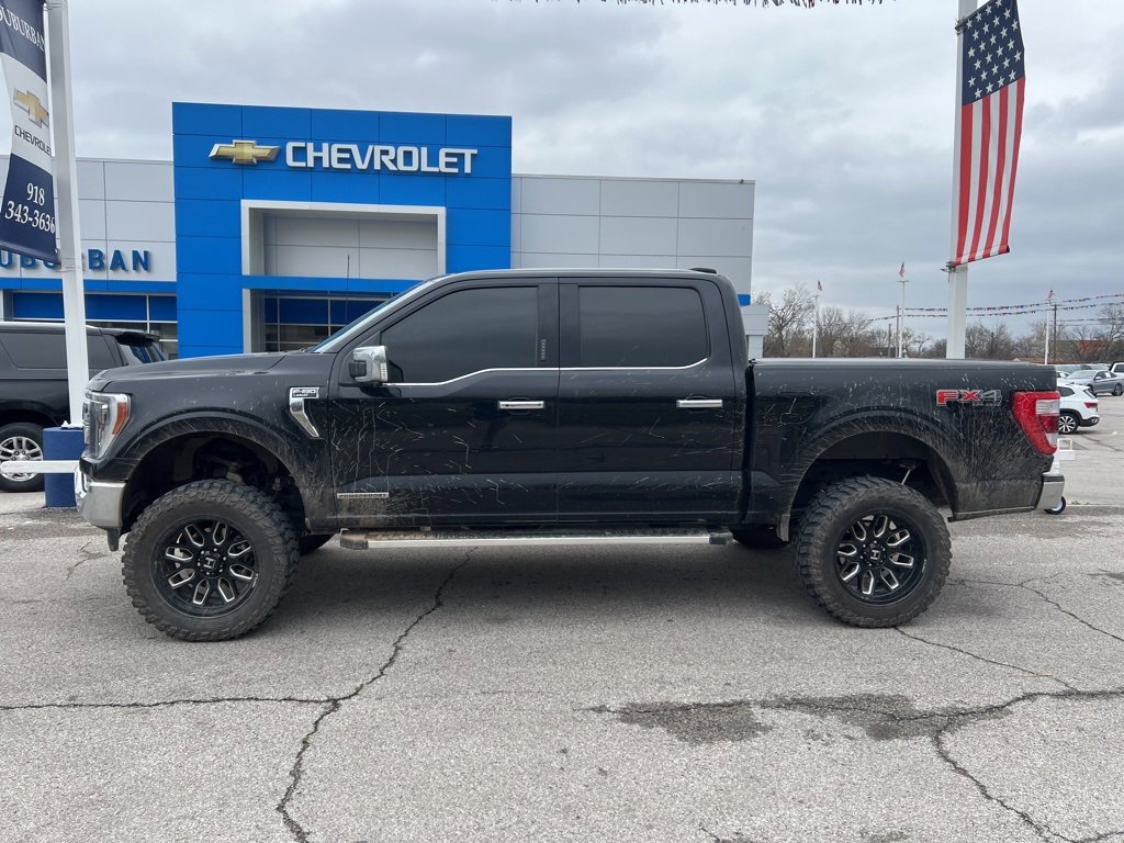 Great deal alert. We deliver nationwide because of our amazing vehicles at amazing prices! No dealers please! We pride ourselves on an outstanding selection of quality pre-owned vehicles, and providing our customers with an amazing purchase experience. We want to be your dealer for life! Recent arrival. Fresh trade in, running boards, rear backup camera, panoramic sunroof, 4WD, keyless entry, heated seats, leather, remote start, lane departure warning, keyless entry, Bluetooth. Save more in Claremore, call for additional info at 918-343-3636. Bluetooth, 4WD, leather, sunroof, 6 lift wheels & tires. 2022 Ford F-150 Lariat 4D SuperCrew Agate Black Metallic F-150 Lariat 3.5L PowerBoost Full-Hybrid V6 10-Speed Automatic 4WD. Visit our website at www.SuburbanChevy.net today to see all of our amazing vehicles! We hope to see you soon!