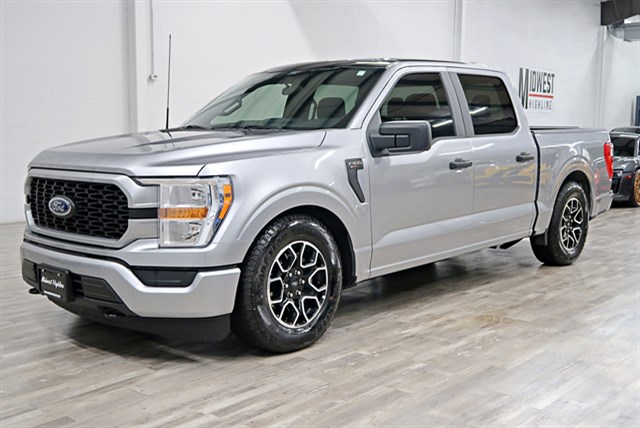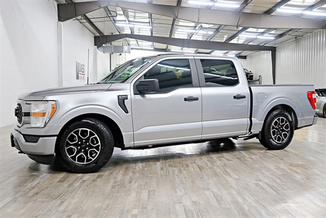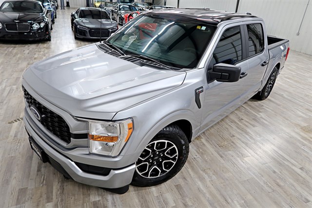 This 2022 Ford F-150 XL SuperCrew 4WD Supercharged features a 5.0L V8 engine and 10-speed automatic transmission. It has a clean Carfax and is one-owner. The vehicle includes a supercharged engine, making it highly powerful.