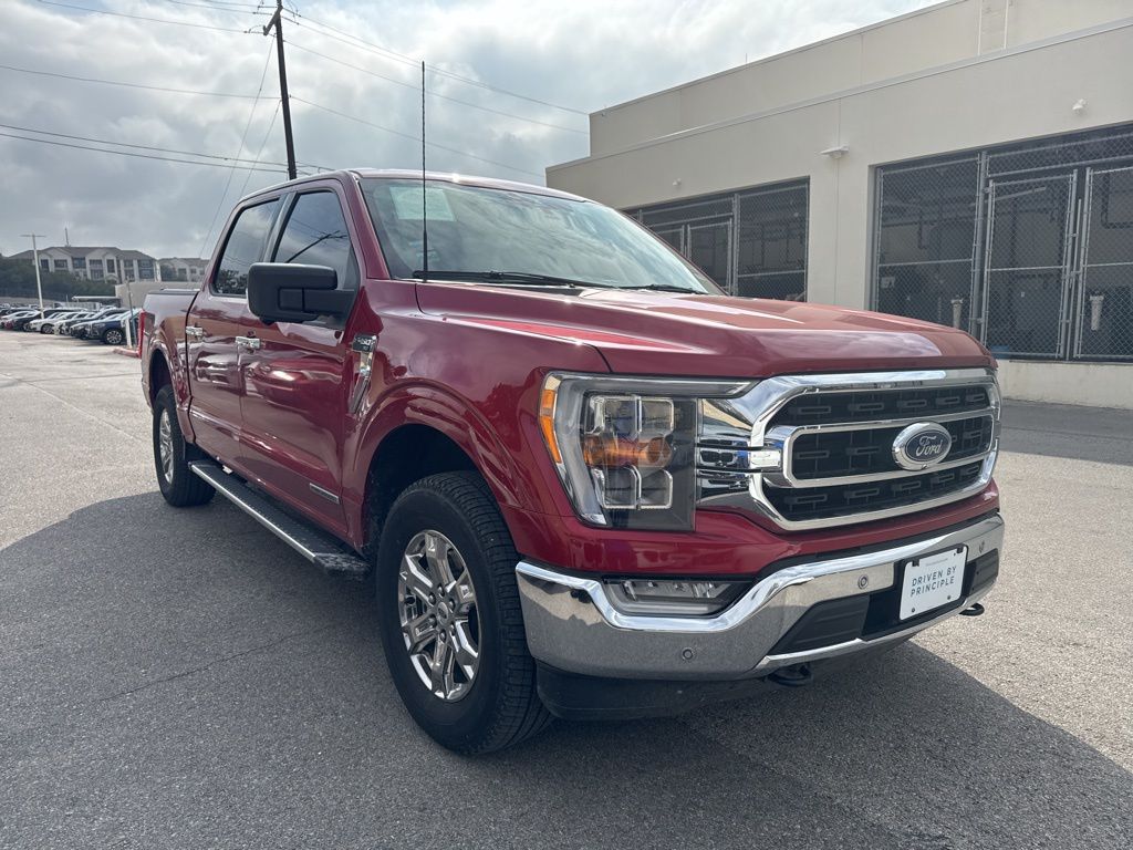 2022 Ford F-150 XLT CARFAX One-Owner. Rapid Red Metallic Tinted Clearcoat Recent Arrival! 3.5L PowerBoost Full-Hybrid V6, 4WD, 10-Way Power Driver & Passenger Seats, 2-Bar Style Grille w/Chrome 2 Minor Bars, 360 Degree Camera, 4x4 FX4 Off-Road Bodyside Decal, 8" Productivity Screen in Instrument Cluster, Auto-Dimming Rear-View Mirror, Bright Polished Step Bars, Chrome Door & Tailgate Handles w/Body-Color Bezel, Chrome Single-Tip Exhaust, Class IV Trailer Hitch Receiver, Connected Built-In Navigation (DISC), Dual Zone Electronic Automatic Temperature Control, Equipment Group 302A High, Evasive Steering Assist, Ford Co-Pilot360 Assist 2.0 (DISC), FX4 Off-Road Package, Heated Front Seats, Hill Descent Control, Integrated Trailer Brake Controller, Intelligent Access w/Push Button Start, Intelligent Adaptive Cruise Control w/Stop & Go, Intersection Assist, Leather-Wrapped Steering Wheel, Monotone. At Principle Auto, we take website accessibility seriously. If for some reason you are having trouble with our website, we are available during normal working hours to assist at (866) 982-6133.