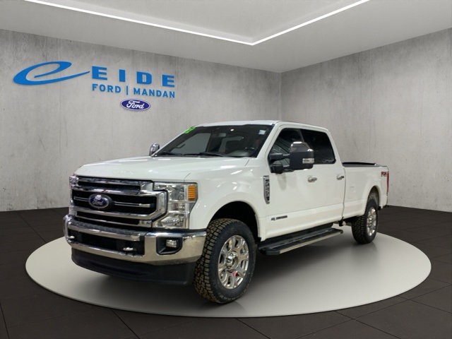 This 2022 Ford F-250 Super Duty SRW Lariat blends serious capability with premium comfort and advanced technology. Built to handle demanding jobs, it features trailer brake controller, trailer sway control, FX4 Off-Road Package with skid plates, electronic-locking rear axle, and Pro Trailer Backup Assist with 360-degree camera support. Inside, the Lariat cabin offers leather seating with heated and ventilated front seats, driver memory, dual-zone automatic climate control, and a large 12-inch SYNC 4 touchscreen with navigation, wireless connectivity, B&O premium audio, FordPass Connect Wi-Fi hotspot, and advanced safety technologies including BLIS with Cross-Traffic Alert and Pre-Collision Assist. This vehicle qualifies for our exclusive "RISK FREE" guarantee. We are Western North Dakota's largest Ford Dealer. We have been in business since 1981 and are locally owned and operated. At Eide Ford Mandan, we believe in giving you a fair and competitive price upfront. All of our vehicles feature our Markdown Pricing to ensure you feel confident about getting a good deal and excellent overall value in your vehicle purchase. We would also love to have your trade! We will give you Fair Market Trade Value for your vehicle. Want to know what your trade is worth? Use the Accu-Trade Instant Cash Offer feature on our website to receive a guaranteed value for your vehicle! We also offer convenient service hours during the week and all day Saturday plus we have a dedicated Diesel Repair Facility & Collision Center. We are very serious about your satisfaction and our aim is to make your experience with us Simple, Fast & Fun. Eide Ford Mandan pre-owned vehicles come standard with one key. If we received more than one key from the previous owner, we include them. Additional keys, as well as dealer-installed accessories, may be purchased at the time of sale.