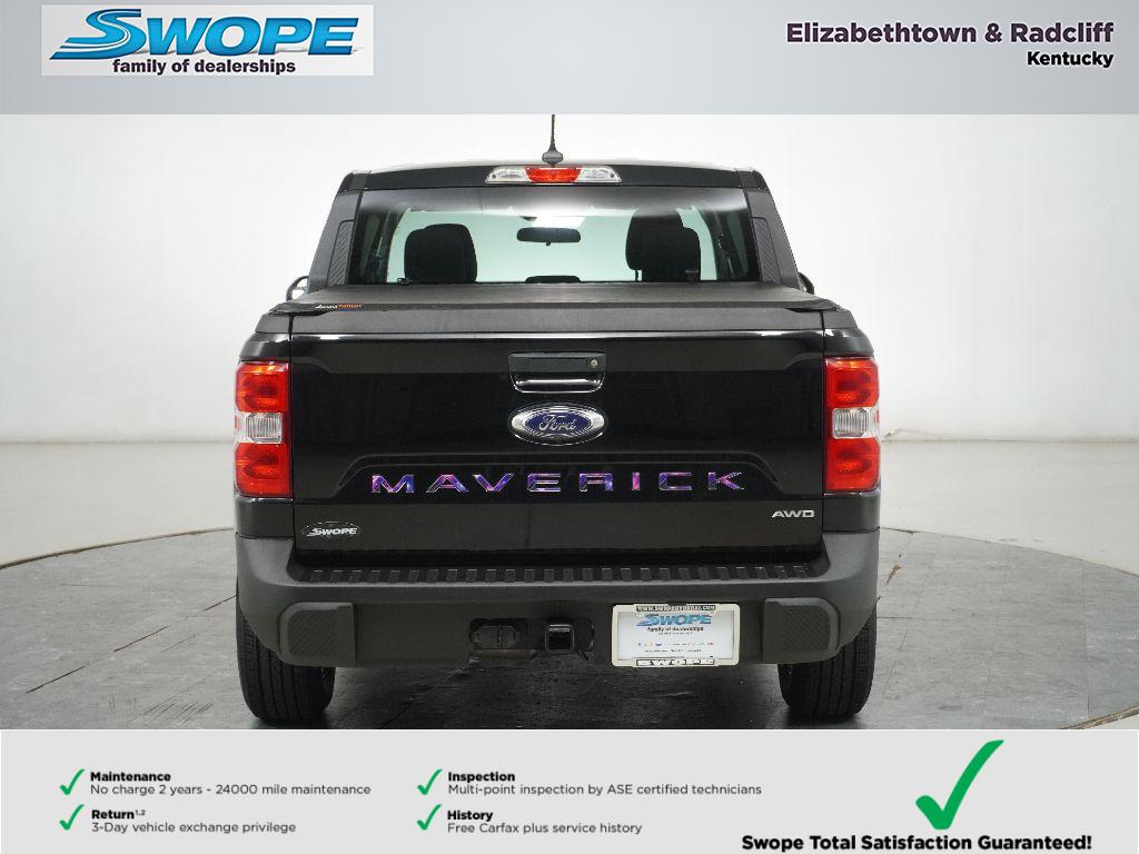 The vehicle offers Apple CarPlay for seamless connectivity. See what's behind you with the back up camera on this vehicle. This small pickup comes equipped with Android Auto for seamless smartphone integration on the road. This vehicle keeps you comfortable with Auto Climate. This small pickup features a hands-free Bluetooth phone system. The vehicle warns of approaching vehicles with Cross-Traffic Alert. This vehicle has a clean CARFAX vehicle history report. The Ford Maverick is equipped with all wheel drive. A trailer braking system is already installed on the Ford Maverick. Maintaining a stable interior temperature in the Ford Maverick is easy with the climate control system. This model has a 4 Cyl, 2.0L high output engine. This vehicle is painted with a sleek and sophisticated black color. Easily set your speed in this unit with a state of the art cruise control system. Increase or decrease velocity with the touch of a button.