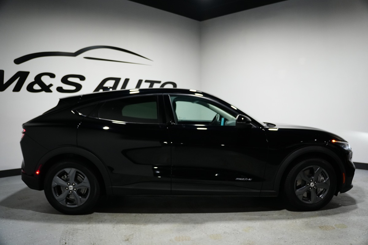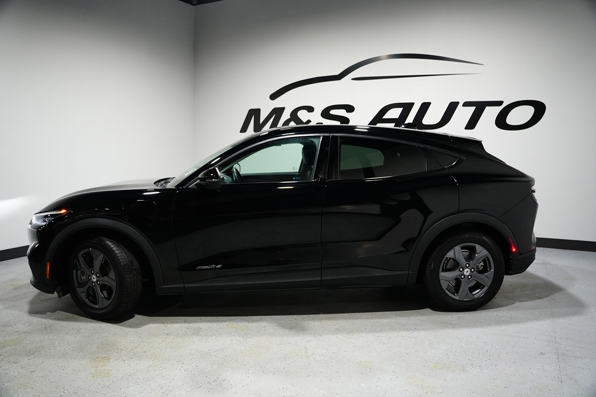 Experience the future of driving with this Carfax 1-Owner 2022 Ford Mustang Mach-E Select RWD, sculpted in the sleek and commanding Shadow Black exterior finish. The Black Onyx interior accentuates the cutting-edge design and sophistication, wrapping passengers in luxury with its premium leather seats. Powered by a responsive primary electric motor, the Mach-E Select showcases the innovative spirit of Ford with its zero-emission performance that promises not only thrill but also sustainability. Equipped with advanced safety and convenience features, this Mustang Mach-E ensures each journey is as tranquil as it is exhilarating. With the integrated blind spot monitor, forward collision warning, and lane departure warning, the vehicle proactively enhances your safety by alerting you to potential hazards, while parking assist technology makes maneuvering in tight spaces a breeze. For inclement weather, rain-sensing wipers adjust automatically, maintaining clear visibility, complemented by the bright clarity of LED headlights. Navigate seamlessly using the reliable onboard navigation system, guiding you to your destination with accuracy. The carefully crafted interface enhances the driving experience through intuitive controls and state-of-the-art technology. With this vehicle expect a harmonious blend of performance, cutting-edge features and sustainable innovation.