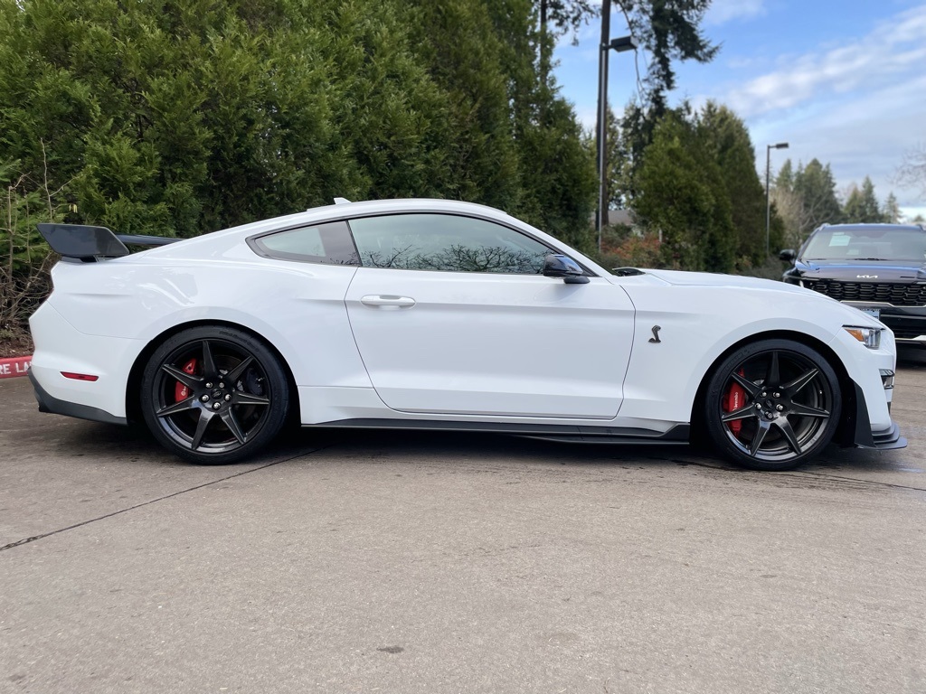 2022 Ford Mustang Shelby GT500 Oxford White 5.2L V8 20" Wheels, 4-Wheel Disc Brakes, 9 Speakers, ABS brakes, Adaptive suspension, Adjustable Strut Top Mounts, Air Conditioning, Alloy wheels, AM/FM radio: SiriusXM, AM/FM Stereo, Auto-dimming Rear-View mirror, Automatic temperature control, BLIS Blind Spot Information System, Blue Indoor Car Cover (Dealer Installed), Brake assist, Bumpers: body-color, Carbon Fiber Track Pack, CD player, Climate Controlled Front Seats, Compass, Delay-off headlights, Driver door bin, Driver vanity mirror, Dual front impact airbags, Dual front side impact airbags, Electronic Stability Control, Emergency communication system: 911 Assist, Equipment Group 950A, Exposed Carbon Fiber GT4 Track Wing, Exposed Carbon Fiber Instrument Panel, Exterior Parking Camera Rear, Four wheel independent suspension, Front anti-roll bar, Front Bucket Seats, Front Center Armrest, Front dual zone A/C, Front reading lights, Fully automatic headlights, Garage door transmitter, Heated front seats, Heated Mirrors, High-Intensity Discharge Headlights, Illuminated entry, Knee airbag, Kona Blue Over-the-Top Stripe, Kona Blue Side Stripes, Leather-Trimmed Sport Seats, Low tire pressure warning, Occupant sensing airbag, Outside temperature display, Overhead airbag, Panic alarm, Passenger door bin, Passenger vanity mirror, Power door mirrors, Power driver seat, Power passenger seat, Power steering, Power windows, Radio data system, Radio: B&O Sound System by Bang & Olufsen, Rear anti-roll bar, Rear window defroster, RECARO Leather-Trimmed Seats w/Miko Suede, Remote keyless entry, Security system, SiriusXM Radio, Speed control, Speed-sensing steering, Speed-Sensitive Wipers, Split folding rear seat, Spoiler, Sport steering wheel, Steering wheel mounted audio controls, SYNC 3 Communications & Entertainment System, Tachometer, Technology Package, Telescoping steering wheel, Tilt steering wheel, Traction control, Trip computer, Variably intermittent wipers, Ventilated front seats, Voice-Activated Touch-Screen Navigation System, Voltmeter, Wheel Locking Kit, Wheels: 20" Exposed Carbon Fiber, Wheels: 20" Flow Formed High Gloss Black Aluminum. Clean CARFAX. KBB Fair Market Range High: $112,390 12/18 City/Highway MPG Come see us today and drive! Ron Tonkin Kia 19335 SE McLoughlin Blvd Gladstone, OR 97027.