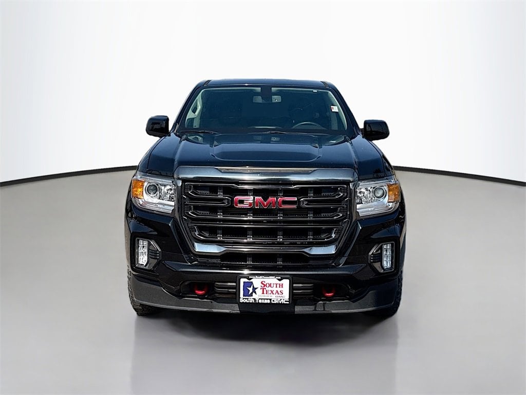 Clean Carfax. Onyx Black 2022 GMC Canyon AT4 w/Leather 4WD 8-Speed Automatic V6. We are open for all your sales and service needs! Complete online buying experience available! Call 956-661-5000 to schedule your contact free test drive today! 4WD, 1st & 2nd Rows All-Weather Floor Liner (LPO), 2 USB Data Ports, 3.42 Rear Axle Ratio, 4-Way Power Front Passenger Seat Adjuster, 4-Wheel Disc Brakes, 6 Speakers, 6-Speaker Audio System Feature, ABS brakes, Air Conditioning, Alloy wheels, AM/FM radio: SiriusXM with 360L, Apple CarPlay/Android Auto, Auto-dimming Rear-View mirror, Automatic temperature control, Bose Premium 7-Speaker Audio System Feature, Bumpers: body-color, Compass, Delay-off headlights, Driver 6-Way Power Seat Adjuster, Driver door bin, Driver Instrument Information Enhanced Display, Driver vanity mirror, Dual front impact airbags, Dual front side impact airbags, Electronic Stability Control, Emergency communication system: OnStar and GMC Connected Services capable, Exterior Parking Camera Rear, Front anti-roll bar, Front Bucket Seats, Front Center Armrest, Front fog lights, Front License Plate Kit, Front reading lights, Front wheel independent suspension, Fully automatic headlights, HD Radio, Heated door mirrors, Heated Steering Wheel, Heated steering wheel, Hitch Guidance, Illuminated entry, Leather-Appointed Seat Trim, Low tire pressure warning, Not Equipped w/Rear Park Assist, Occupant sensing airbag, Outside temperature display, Overhead airbag, Overhead console, Panic alarm, Passenger door bin, Passenger vanity mirror, Power door mirrors, Power Driver Lumbar Control Seat Adjuster, Power driver seat, Power Passenger Lumbar Control Seat Adjuster, Power passenger seat, Power steering, Power windows, Preferred Equipment Group 4SB, Premium audio system: GMC Infotainment System, Radio data system, Radio: AM/FM w/8 Diagonal Multi-Touch Display, Radio: AM/FM w/8 Diagonal Multi-Touch Display Nav, Rear reading lights, Rear seat center armrest, Rear step bumper, Rear window defroster, Remote keyless entry, Security system, SiriusXM Radio, Speed control, Speed-sensing steering, Steering wheel mounted audio controls, Tachometer, Telescoping steering wheel, Tilt steering wheel, Tow/Haul Mode, Traction control, Trailering Package, Trip computer, Variably intermittent wipers, Wheels: 17 x 8 Dark Argent Metallic. Recent Arrival!