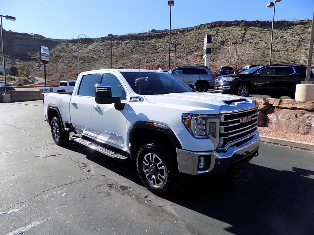 One Owner 2022 GMC Sierra 2500 SLT 4WD with 6.6L V8 Duramax Diesel! B&W Gooseneck Turnover Ball Hitch, 6 Passenger Seating, Leather, Heated Seats, Backup Camera, X31 Off Road Package, Bed View Camera, Apple Carplay, Android Auto, and all the right options! Drive home in a rugged, reliable 2022 GMC Sierra 2500 SLT with 4WD and the heavy-duty 6.6L V8 diesel engine. Built for towing, hauling, and off-road adventures, this GMC Sierra combines capability with comfort and contemporary tech. Located in St George UT, this truck is offered at the best price in the area – exceptional value for a diesel-powered workhorse. The SLT trim adds luxury touches and practical upgrades that make long drives and workdays easier. This GMC Sierra 2500 offers a spacious cabin, user-friendly infotainment, and robust construction designed to last. Whether you need a dependable truck for commercial use, weekend recreation, or towing a trailer, this GMC Sierra is ready.