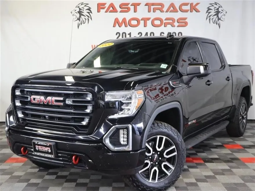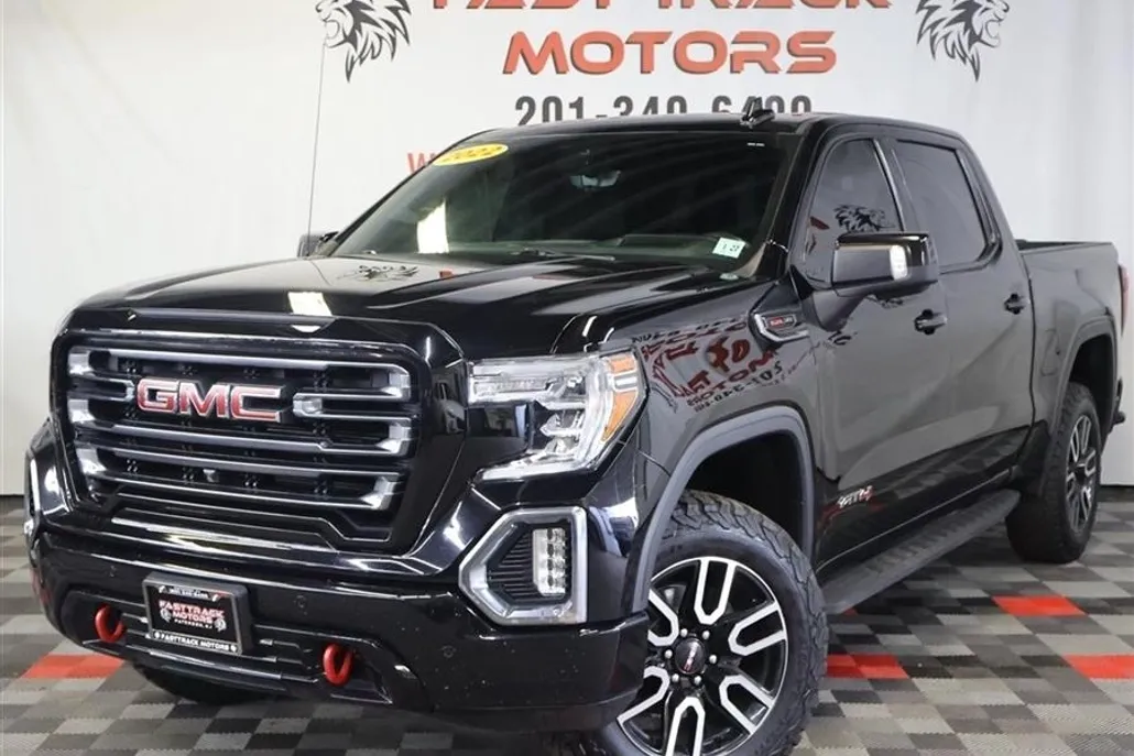 2022 GMC Sierra Limited K1500 AT4, available for sale in Paterson, New Jersey. One owner. Clean Carfax. Leather interior. Heated seats. Cooled seats. Power seats. Memory seat. Power sunroof. Voice activated navigation. 360 degree camera. Bose audio. Bluetooth. Apple CarPlay. Android Auto. Wi-Fi hotspot. Spray on bedliner. Running boards. Dual exhaust. AT4 premium package. Technology package. Driver alert package II. 20 inch machined aluminum wheels. Rear sliding window. Powerfold mirrors. GMC Multi-Pro tailgate. Wireless charging. Lane change alert. Rear cross traffic alert. AT4 clearance steps. HD trailer camera. Bed view camera. Forward collision. Automatic emergency braking. Adaptive cruise control. Front and rear park assist.