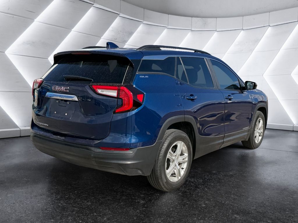 Discover the versatile and well-equipped 2022 GMC Terrain SLE, a compact SUV that blends style, technology, and convenience to elevate your driving experience. With its striking Blue exterior and a host of premium features, this Terrain is poised to exceed your expectations. This Terrain SLE is powered by a 1.5L DOHC engine paired with a 9-speed automatic transmission, delivering an impressive 25 city/30 highway MPG. With its spacious and well-appointed interior, the Terrain SLE offers the perfect blend of comfort, connectivity, and capability to enhance your daily drives and weekend adventures. Experience the seamless integration of advanced technology with the Terrain's 8-inch diagonal GMC Infotainment System. Enjoy wireless Apple CarPlay and Android Auto, allowing you to access your favorite apps, music, and more with ease. The 4.2-inch multi-color driver information screen provides essential vehicle data at a glance, while the 110-volt power outlet keeps your devices charged on the go. Elevate your comfort with the Driver Convenience Package, which includes heated front seats, an 8-way power driver's seat, and a power driver's lumbar control. The dual-zone automatic climate control ensures everyone on board enjoys their ideal temperature, while the remote start feature allows you to warm up or cool down the cabin before you even step inside. For added versatility, the Terrain SLE's spacious cargo area and split-folding rear seats provide ample room to accommodate your gear, whether you're heading out for a weekend getaway or tackling a home improvement project. The roof-mounted luggage rack cross bars further expand your carrying capacity. Discover the perfect balance of style, technology, and capability in the 2022 GMC Terrain SLE. Experience the difference for yourself – visit our showroom today and let us demonstrate how this exceptional compact SUV can enhance your driving experience.