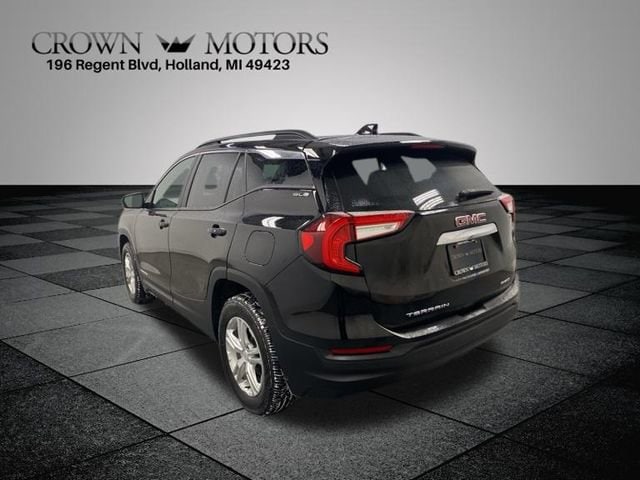 Ebony Twilight Metallic 2022 GMC Terrain SLE AWD 9-Speed Automatic 1.5L DOHC. Recent Arrival! Odometer is 11078 miles below market average! 25/28 City/Highway MPG. Call us today for a test drive at 1-616-394-5599 or for a quick question TEXT 616-499-2225. Customer Satisfaction Comes First Award-Winning Service Department Family-Owned and Community-Focused. As a local business, we proudly support West Michigan schools, charities, and organizations. No Gimmicks, No Hidden Fees. Crown Motors provides straightforward, transparent pricing. Convenient Online Shopping. Our online team is available to assist you every step of the way. Proven Customer Satisfaction.