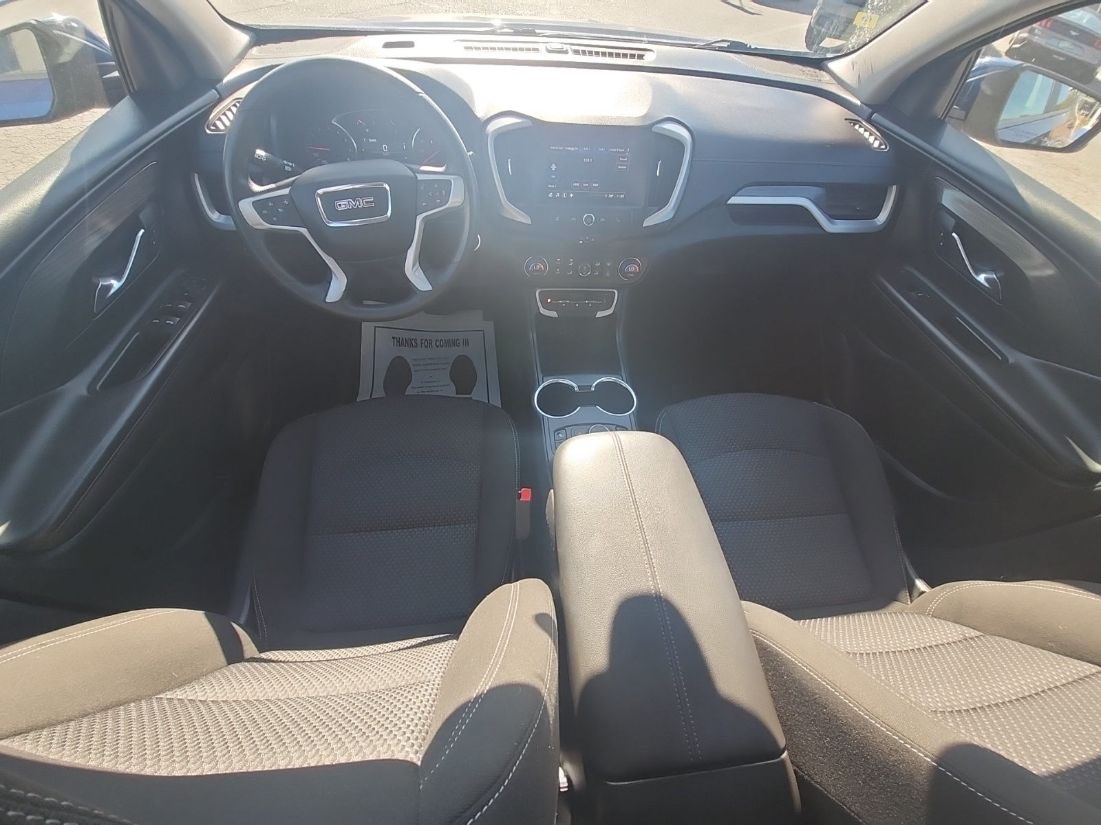 This 2022 GMC Terrain SLE in Marine Metallic includes the following features: 1.5L DOHC 9-Speed Automatic FWD Driver Convenience Package (8-Way Power Driver Seat Adjuster, Driver & Front Passenger Heated Seats, Dual-Zone Automatic Climate Control, Power Driver Lumbar Control, Remote Start, and Roof-Mounted Luggage Rack Side Rails), Floor Liner Package (LPO) (Front & Rear All-Weather Floor Liners (LPO) and Integrated Cargo Liner (LPO)), License Plate Front Mounting Package, Preferred Equipment Group 3SA, 2 USB Data Ports w/Auxiliary Input Jack, 3 Years of OnStar & Connected Services Plan, 3.47 Axle Ratio, 4-Way Manual Driver’s Seat, 4-Way Manual Front Passenger Seat, 4-Wheel Disc Brakes, 4.2″ Multi-Color Driver Information Screen, 6 Speakers, 6-Speaker Audio System Feature, ABS brakes, Air Conditioning, Alloy wheels, AM/FM radio: SiriusXM, Auto High-beam Headlights, Auto-dimming Rear-View mirror, Automatic temperature control, Bluetooth® For Phone, Brake assist, Bumpers: body-color, Compass, Delay-off headlights, Driver door bin, Driver vanity mirror, Dual front impact airbags, Dual front side impact airbags, Electronic Stability Control, Emergency communication system: OnStar Guidance, Four wheel independent suspension, Front anti-roll bar, Front Bucket Seats, Front Center Armrest, Front reading lights, Fully automatic headlights, Heated door mirrors, Illuminated entry, Low tire pressure warning, Occupant sensing airbag, Outside temperature display, Overhead airbag, Overhead console, Panic alarm, Passenger door bin, Passenger vanity mirror, Power door mirrors, Power Programmable Rear Liftgate, Power steering, Power windows, Premium Cloth Seat Trim, Radio data system, Radio: GMC Infotainment Audio System w/7″ Display, Rear anti-roll bar, Rear seat center armrest, Rear window defroster, Rear window wiper, Remote keyless entry, Security system, SiriusXM Radio, Speed control, Speed-sensing steering, Split folding rear seat, Spoiler, Steering wheel mounted audio controls, Tachometer, Telescoping steering wheel, Tilt steering wheel, Traction control, Trip computer.
