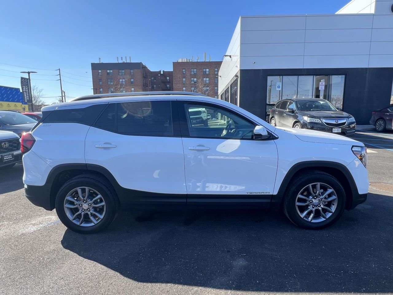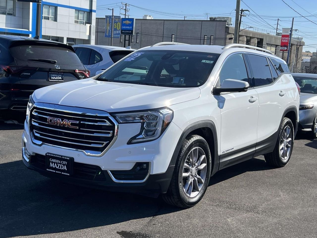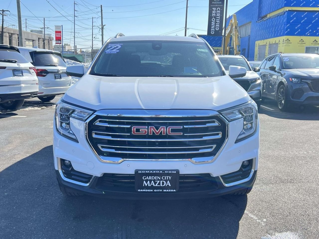 New Price! Summit White 2022 GMC Terrain SLT Terrain SLT, 4D Sport Utility, 1.5L DOHC, 9-Speed Automatic, AWD, Summit White, Jet Black Leather. Priced below KBB Fair Purchase Price! Odometer is 5288 miles below market average! CARFAX One-Owner. While every effort is made to verify the accuracy of online prices, we are not responsible for typographical data errors or price changes! All prices are with financing through our primary lenders with Tier 1 credit. No two offers can be combined. All internet prices include any and all e-coupon offers which should be presented at time of sale. All prices exclude tax, title, extended service contracts, deal fees, market adjustments or discounts, and/or other fees required by law, tags, NYS inspection & DMV. Other restrictions may apply. See dealer for full details or visit our website at: www.gcmazda.com.