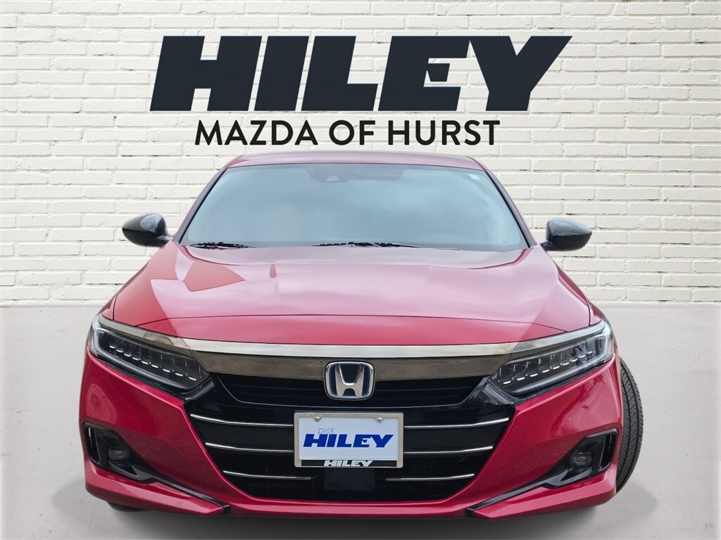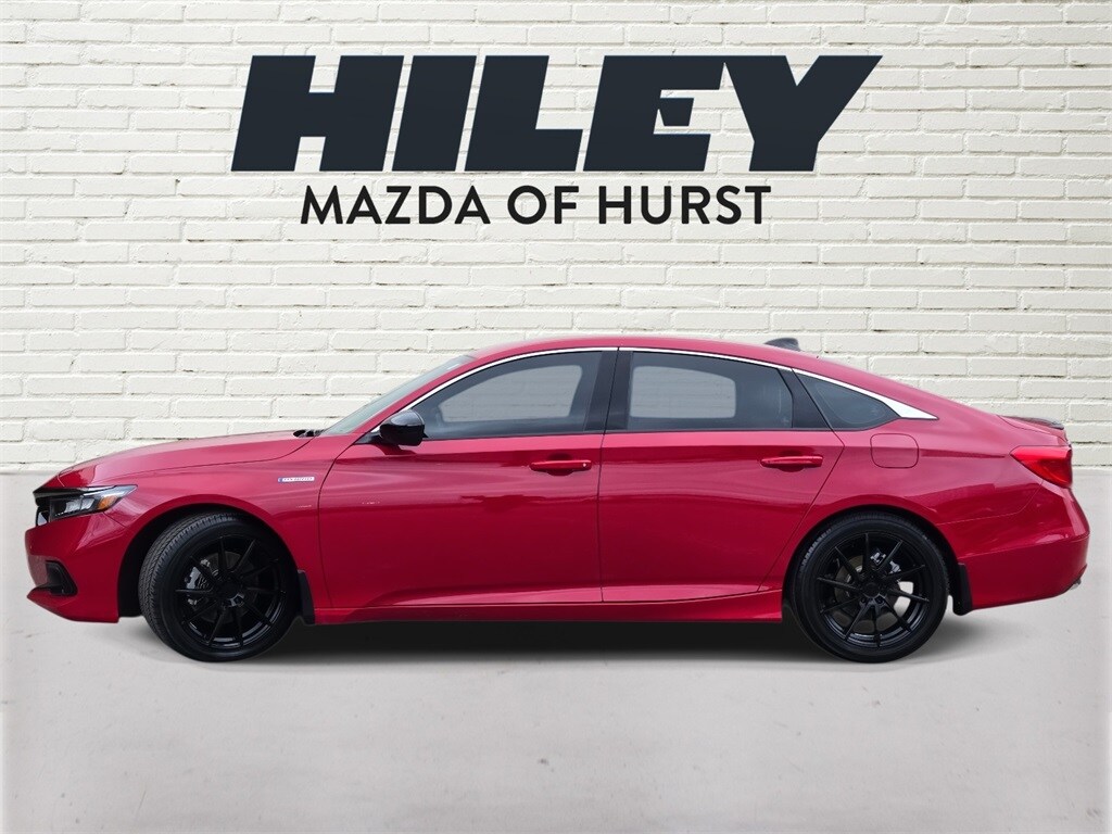 Recent Arrival! Carfax One-Owner. Clean Carfax. One owner, heated seats, power seat, navigation, local trade in, new car trade in, 2.0L 4-Cylinder DOHC 16V i-VTEC, Adaptive Cruise Control: Adaptive Cruise Control (ACC) with Low-Speed Follow, Alloy wheels, Apple CarPlay/Android Auto, Auto High-beam Headlights, Emergency communication system: HondaLink, Exterior Parking Camera Rear, Forward collision: Collision Mitigation Braking System (CMBS) + FCW mitigation, Front fog lights, Illuminated entry, Lane Departure Warning System, Radio: 180-Watt HD Audio System, Speed-Sensitive Wipers, Wheels: 19" Machine-Finished Alloy w/Black Inserts. San Marino Red 2022 Honda Accord Hybrid Sport FWD eCVT 2.0L 4-Cylinder DOHC 16V i-VTEC. Hiley Mazda of Hurst 817-701-1000. Trade ins are welcome and we finance! Please call to confirm availability, as used vehicles are first come, first sold. All used vehicles are subject to 2% Sales and Service fee. Thank you for shopping with us!