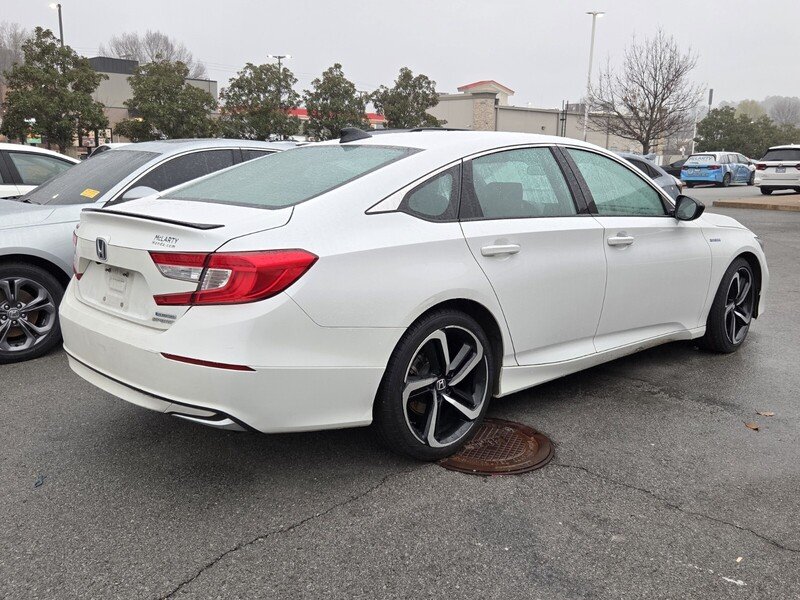 This 2022 Honda Accord Hybrid Sport is available now at McLarty Honda, delivering sleek styling, impressive fuel efficiency, and the refined comfort that has made the Accord one of America’s most popular midsize sedans. Under the hood, the Accord Hybrid Sport features Honda’s advanced 2.0L 4-cylinder engine paired with a two-motor hybrid system, producing 212 total system horsepower for smooth and responsive performance. The hybrid powertrain is designed to maximize efficiency while maintaining strong acceleration for everyday driving. Fuel economy is a major highlight, with EPA-estimated ratings of about 44 MPG city and 41 MPG highway, helping you spend less time at the pump and more time on the road. The Sport trim adds athletic styling and premium features, including 19-inch alloy wheels, sport pedals, a rear spoiler, and bold exterior accents that give the Accord a distinctive and dynamic look. Inside, the cabin offers a comfortable and modern driving experience with Apple CarPlay®, Android Auto™, a touchscreen infotainment system, dual-zone automatic climate control, push-button start, and premium interior materials. With seating for five and a spacious trunk, the Accord Hybrid is perfect for commuting, road trips, or everyday errands. Safety comes standard with Honda Sensing®, which includes advanced driver-assist technologies such as Adaptive Cruise Control, Collision Mitigation Braking System™, Lane Keeping Assist, and Road Departure Mitigation to help keep you confident behind the wheel. Shop this 2022 Honda Accord Hybrid Sport at McLarty Honda, proudly serving drivers from Little Rock, Benton, Bryant, Conway, Cabot, Sherwood, Maumelle, Jacksonville, Hot Springs, Searcy, Pine Bluff, and Russellville looking for a stylish and fuel-efficient sedan.