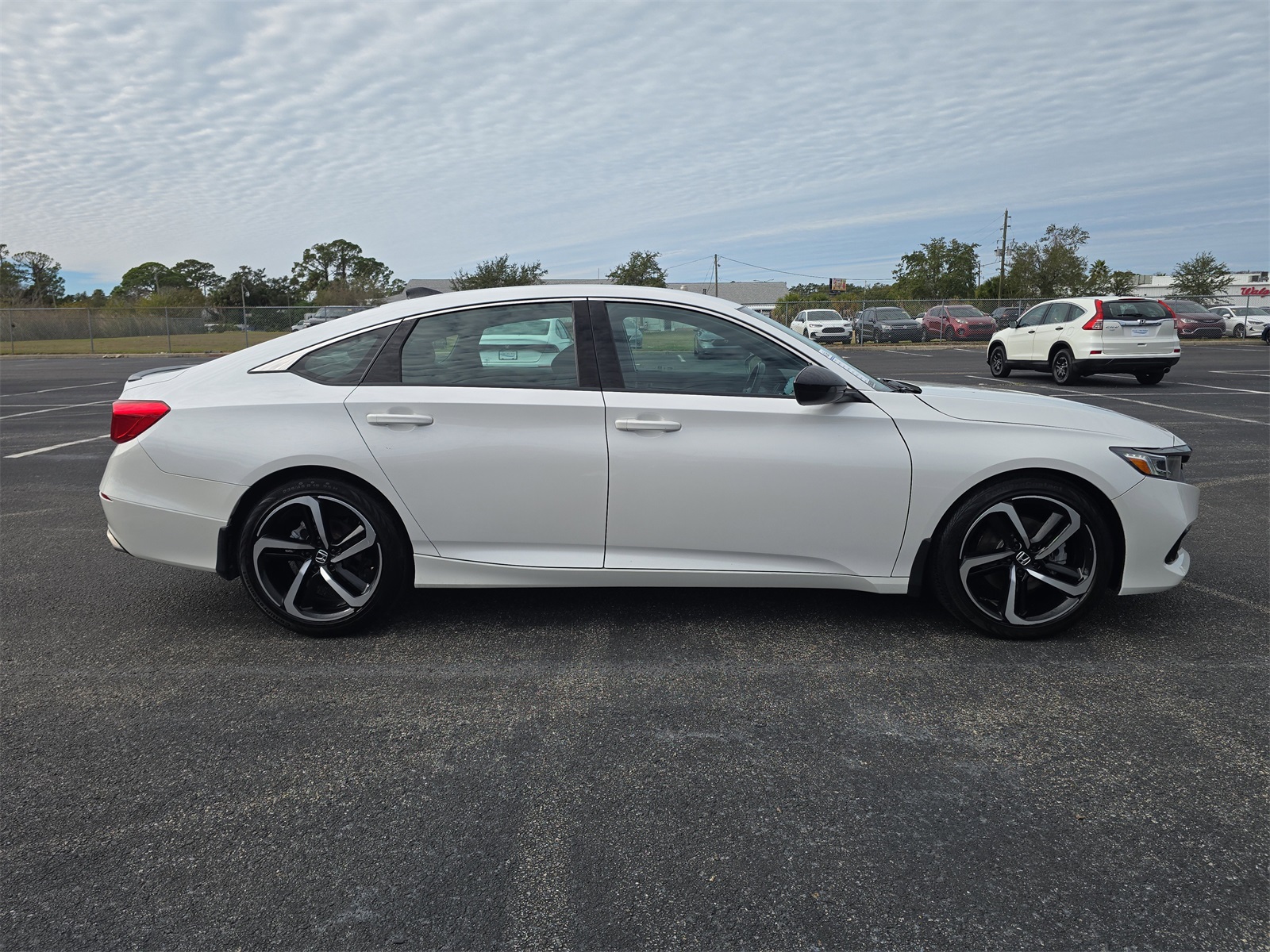 Experience style, performance, and everyday comfort in this 2022 Honda Accord Sport finished in Platinum White Pearl. This sedan delivers the perfect balance of sophistication and athletic design, highlighted by its sleek body lines, bold front grille, and sporty details like dual chrome exhaust tips and sharp alloy wheels. The Platinum White Pearl exterior gives the Accord a clean, modern, and upscale appearance that shines from every angle, whether you're driving through the city or cruising on the highway. Step inside, and you're greeted by a cabin that blends sport-inspired touches with premium comfort. The Sport-trim seats offer supportive bolstering, and the combination of leather and cloth materials gives the interior a refined yet athletic feel. A leather-wrapped steering wheel, aluminum pedals, and a driver-focused layout create an engaging environment for every trip—short or long. The Accord Sport comes equipped with a wide range of modern technology. You'll enjoy a large touchscreen display, Apple CarPlay, Android Auto, Bluetooth, USB ports, and steering-wheel controls, making it easy to stay connected and entertained. Push-button start and smart entry add convenience to your daily routine, while the spacious cabin offers ample legroom for both front and rear passengers. Under the hood, the 1.5L turbocharged engine delivers a strong blend of power and fuel efficiency, providing smooth acceleration and responsive performance. Whether you're navigating traffic or merging onto the freeway, the Accord Sport feels confident and capable. Its well-tuned suspension and precise steering create a refined, enjoyable driving experience that sets it apart in its class. Safety is always a priority with Honda. The Accord Sport includes Honda Sensing, a suite of advanced driver-assist features such as lane-keeping assist, adaptive cruise control, collision mitigation braking, and road departure mitigation. A multi-angle rearview camera and additional safety systems further enhance your confidence behind the wheel. Practicality also shines with its generous trunk space, fold-down rear seats, and excellent fuel economy—making this sedan as functional as it is stylish. Overall, this 2022 Honda Accord Sport in Platinum White Pearl offers a winning combination of sporty design, advanced technology, dependable performance, and everyday versatility. Its an ideal choice for drivers who want a sedan that looks great, feels great, and performs beautifully on every drive.