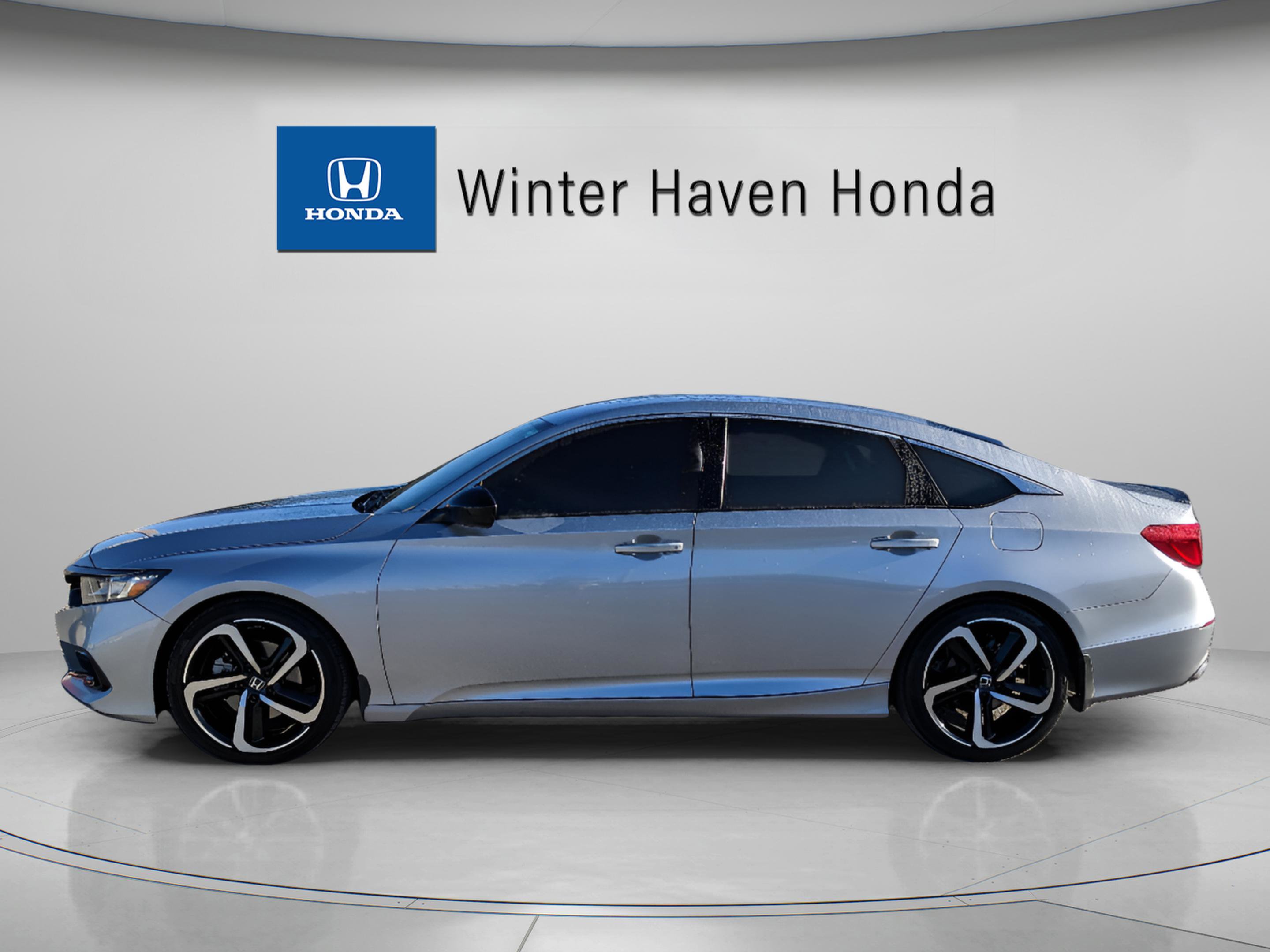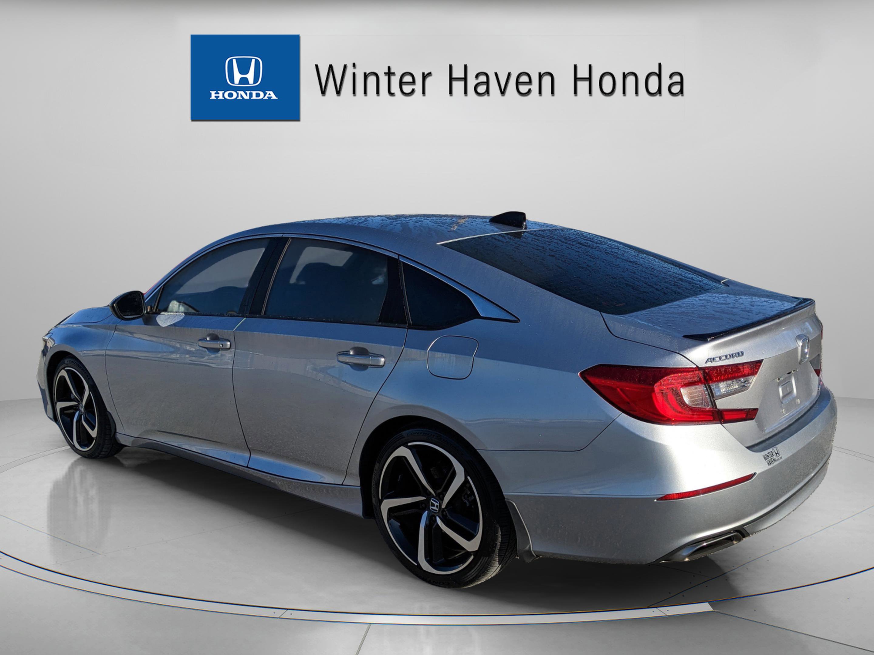 2022 Honda Accord Sport Clean Carfax, Local Winter Haven Honda Vehicle, 117k Miles. One-owner, Winter Haven Honda original bought new and serviced here, then traded back in. Full-circle history you wont find on just any used car. This 2022 Accord Sport has 117,050 miles, a clean Carfax, and strong service records, making it a well-maintained local trade that delivers sporty styling and proven reliability. The Sport trim features aggressive exterior accents, 19-inch alloy wheels, sport cloth seating, power driver seat, Apple CarPlay/Android Auto, touchscreen display, dual-zone climate control, backup camera, and a smooth, responsive ride. Honda Sensing safety technology comes standard with adaptive cruise control, lane keeping assist, collision mitigation braking, and road departure mitigation. With its spacious interior, comfortable ride, and excellent long-term durability, this Accord Sport remains one of the best values in the midsize sedan segment.