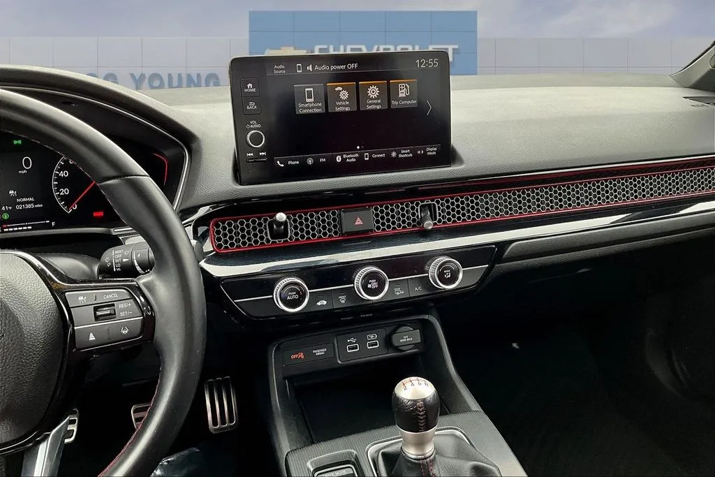Discover the 2022 Honda Civic Si Sedan, a spirited used vehicle that combines sporty performance with modern comfort. With just over 21,000 miles, this turbocharged 1.5-liter four-cylinder offers 200 horsepower at 6,000 rpm and 192 lb-ft of torque at 1,800 rpm, delivering an engaging drive packed into a sleek four-door design. Its 6-speed manual transmission provides a connected and dynamic experience, while front-wheel drive ensures confident handling. This Civic Si is loaded with advanced features including adaptive cruise control, Apple CarPlay, and a backup camera, making every journey safer and more convenient. Comfort is enhanced with a sunroof, premium audio system, Bluetooth connectivity, and satellite radio readiness, all wrapped in a stylish sedan with seating for five. This used Honda Civic Si is equipped with a host of driver-assist and safety features to keep you secure on the road. It includes a rear seat reminder, dual front knee airbags, traffic sign recognition, and four-wheel anti-lock braking system (ABS). Additional safety measures are auto-locking power door locks, cornering brake control, and an electronic parking brake with auto-off function. These systems work together to provide peace of mind, whether navigating city streets or highway drives. The vehicle's well-maintained condition and comprehensive safety features make it an excellent choice for daily commuting or weekend adventures.