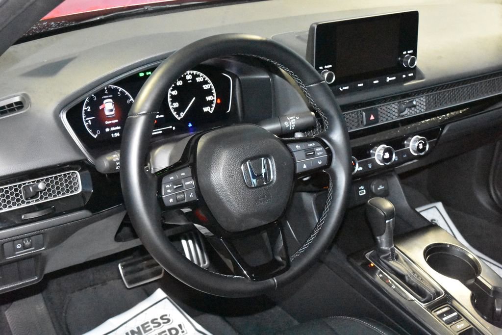 2022 Honda Civic Sport Recent Arrival! Prices listed do not include a $250 documentation fee, applicable tax, title, tags, license, or $195 service and preparation. All pricing, vehicle information, and features (such as accessories and color) are believed to be accurate, but we do not warrant or guarantee such accuracy. The prices shown above may vary from region to region, and incentives are subject to change. Some offers listed may not be available to all customers. All online sale commitments are subject to confirmation of continued availability of vehicle. Once availability is confirmed, online sale agreement becomes binding upon the parties. If any information found on the website is thought to be erroneous, please verify information with a customer service representative. See dealer for full details. Black w/Cloth Seat Trim, 4-Wheel Disc Brakes, 8 Speakers, ABS brakes, Adaptive Cruise Control: Adaptive Cruise Control (ACC) with Low-Speed Follow, Air Conditioning, Alloy wheels, AM/FM radio, Apple CarPlay/Android Auto, Auto High-beam Headlights, Automatic temperature control, Brake assist, Bumpers: body-color, Cloth Seat Trim, Delay-off headlights, Driver door bin, Driver vanity mirror, Dual front impact airbags, Dual front side impact airbags, Electronic Stability Control, Emergency communication system: HondaLink, Exterior Parking Camera Rear, Forward collision: Collision Mitigation Braking System (CMBS) + FCW mitigation, Four wheel independent suspension, Front anti-roll bar, Front Bucket Seats, Front Center Armrest, Front reading lights, Fully automatic headlights, Illuminated entry, Knee airbag, Leather Shift Knob, Leather steering wheel, Low tire pressure warning, Occupant sensing airbag, Outside temperature display, Overhead airbag, Panic alarm, Passenger door bin, Passenger vanity mirror, Power door mirrors, Power steering, Power windows, Radio data system, Radio: 180-Watt AM/FM Audio System, Rear anti-roll bar, Rear side impact airbag, Rear window defroster, Remote keyless entry, Security system, Speed control, Speed-sensing steering, Steering wheel mounted audio controls, Tachometer, Telescoping steering wheel, Tilt steering wheel, Traction control, Trip computer, Wheels: 18 Gloss Black Alloy, Black w/Cloth Seat Trim. CARFAX One-Owner. 4D Sedan Sport CVT 2.0L I4 DOHC 16V i-VTEC FWD Rallye Red (812) 477-6201 and shop online at www.dpathonda.com.