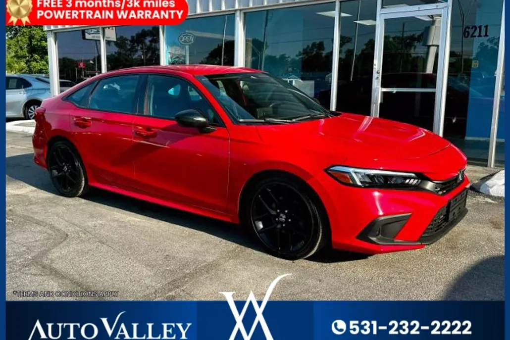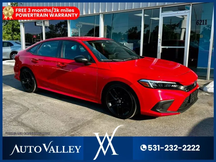 The 2022 Honda Civic Sport Sedan delivers a standout blend of sporty style, sharp performance, and everyday practicality. Its turbocharged 2.0L engine offers spirited acceleration with excellent fuel efficiency. A sleek, aggressive exterior is complemented by 18‑inch alloy wheels and LED lighting. Inside, the cabin is roomy and modern, featuring a user‑friendly infotainment system with Apple CarPlay/Android Auto. Sport‑tuned suspension gives engaging handling, while advanced safety tech—including Honda Sensing—provides confidence and peace of mind. It comes with 3 months/3,000-mile free limited warranty. All of our vehicles go through a 100+ point inspection completed by our certified mechanics, and the inspection reports are available upon request. At Autovalley, we make car buying simple, straightforward, and enjoyable. Visit our showroom today or call (531) 232-2222 to schedule an appointment and test drive. Upon request, we offer a complimentary vehicle history report on every vehicle in stock. This car has a Nebraska-branded title.