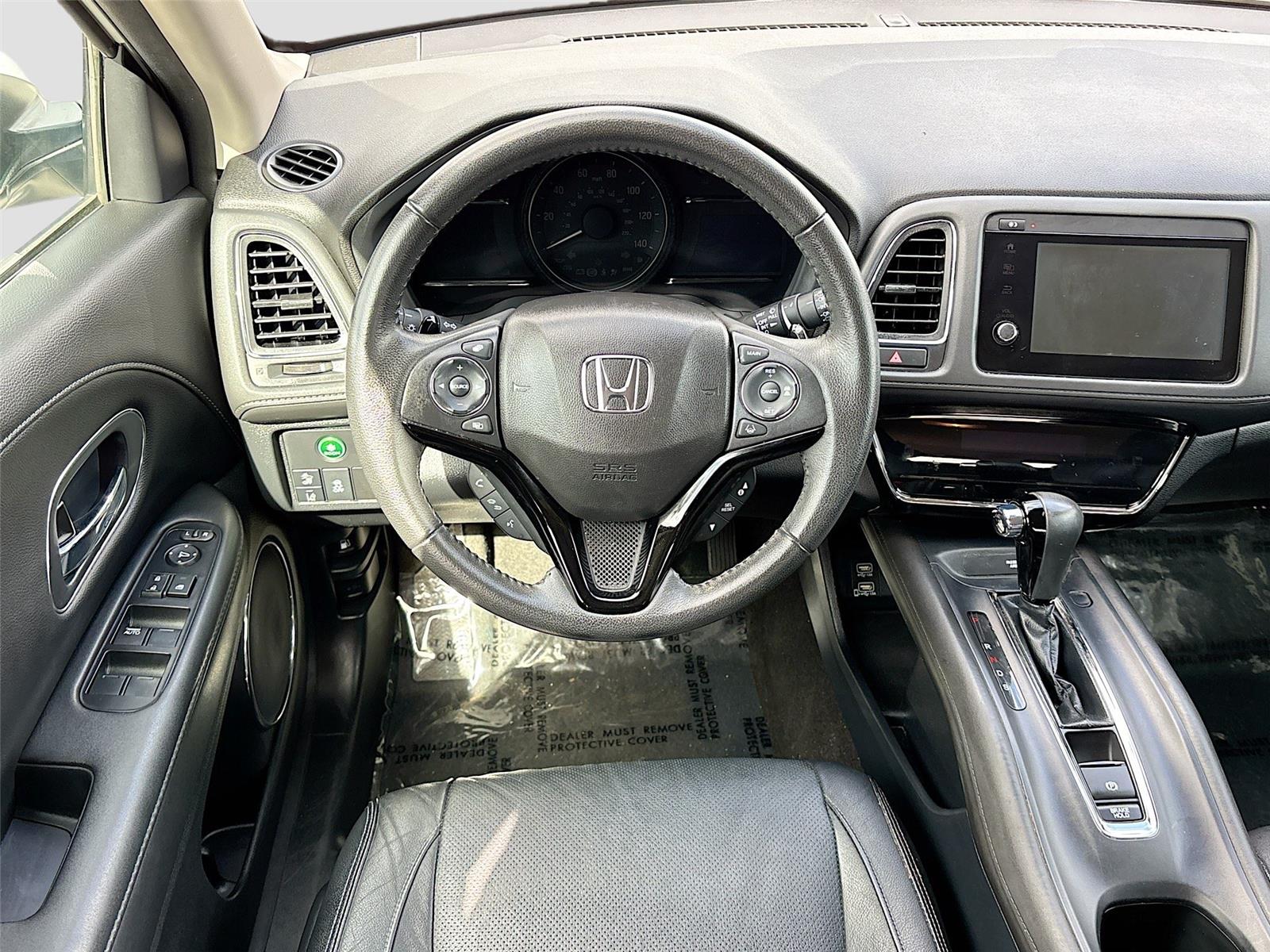 This HR-V has the following features: Forward collision mitigation – Forward thinking. You look away for just a second and suddenly the vehicle in front of you has stopped. That’s when the forward collision mitigation system comes to life. When it senses an impending impact, it will activate a combination of features to help prevent or reduce the severity of an accident. Forward collision mitigation is always looking ahead. Pedestrian impact prevention – An extra step toward safety. Pedestrians don’t always stop, look, and listen, but with Pedestrian Impact Prevention, your vehicle is equipped to better see them and avoid them. This system constantly monitors the road ahead to identify and track pedestrians. It projects that image to an interior display screen, AND should an impact become likely, Pedestrian impact prevention takes steps to avoid a collision. Hands-on cruise control. Set it and forget it. Road trips used to be stressful. Cruise control only managed speed, but not distance or safety. Now, with hands-on cruise control, simply set your desired speed and let sensor technology maintain a safe distance between you and surrounding vehicles. It slows you down; speeds you up and even keeps you in your own lane. Meet your ultimate co-pilot with hands-on cruise control. Rear camera – Watching your back! The rear camera helps you see obstacles and hazards you otherwise couldn’t by showing enhanced images of what is behind you.