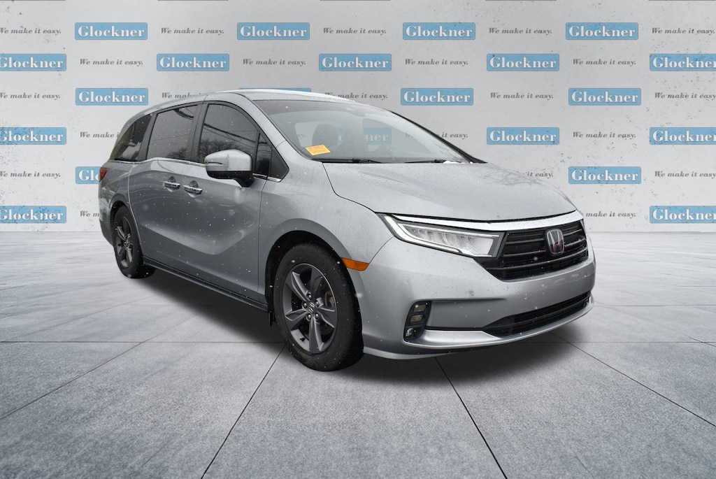 Glockner of Ironton is proud to offer this beautiful 2022 Honda Odyssey in Modern Steel Metallic. This 2022 Honda Odyssey has passed our comprehensive inspection and comes with the following features; 3.61 Axle Ratio, 3rd row seats: split-bench, 4-Wheel Disc Brakes, 7 Speakers, A/V remote: CabinControl, ABS brakes, Adaptive Cruise Control: Adaptive Cruise Control (ACC) with Low-Speed Follow, Air Conditioning, Alloy wheels, AM/FM radio: SiriusXM, Anti-whiplash front head restraints, Apple CarPlay/Android Auto, Auto High-beam Headlights, Automatic temperature control, Blind Spot Information (BSI) System warning, Brake assist, Bumpers: body-color, Cloth Seat Trim, Delay-off headlights, Driver door bin, Driver vanity mirror, Driver's Seat Mounted Armrest, Dual front impact airbags, Dual front side impact airbags, Electronic Stability Control, Exterior Parking Camera Rear, Forward collision: Collision Mitigation Braking System (CMBS) + FCW mitigation, Four wheel independent suspension, Front anti-roll bar, Front Bucket Seats, Front dual zone A/C, Front fog lights, Front reading lights, Fully automatic headlights, Heated door mirrors, Heated Front Bucket Seats, Heated front seats, Illuminated entry, Knee airbag, Lane departure: Lane Keeping Assist System (LKAS) active, Low tire pressure warning, Occupant sensing airbag, Outside temperature display, Overhead airbag, Overhead console, Panic alarm, Passenger door bin, Passenger seat mounted armrest, Passenger vanity mirror, Power door mirrors, Power driver seat, Power passenger seat, Power steering, Power windows, Radio data system, Radio: 160-Watt AM/FM/HD/SiriusXM Audio System, Rear air conditioning, Rear anti-roll bar, Rear reading lights, Rear seat center armrest, Rear window defroster, Rear window wiper, Reclining 3rd row seat, Remote keyless entry, Security system, Speed control, Speed-sensing steering, Speed-Sensitive Wipers, Split folding rear seat, Spoiler, Steering wheel mounted audio controls, Tachometer, Telescoping steering wheel, Tilt steering wheel, Traction control, Trip computer, Turn signal indicator mirrors, Variably intermittent wipers, and Wheels: 18 Pewter Gray-Painted Alloy.