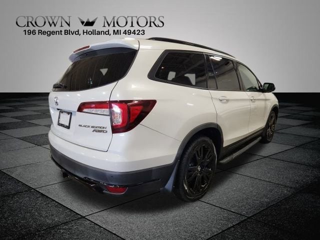 CARFAX One-Owner. Clean CARFAX. Platinum White Pearl 2022 Honda Pilot Black Edition AWD 9-Speed Automatic 3.5L V6 24V SOHC i-VTEC. One owner, accident free, AWD. Recent Arrival! 19/26 City/Highway MPG. Call us today for a test drive at 1-616-394-5599 or for a quick question TEXT 616-499-2225. Feel free to click on the Carfax. It is free! Customer Satisfaction Comes First Award-Winning Service Department Family-Owned and Community-Focused. As a local business, we proudly support West Michigan schools, charities, and organizations. No Gimmicks, No Hidden Fees. Crown Motors provides straightforward, transparent pricing. Convenient Online Shopping. Apply for financing, get a trade-in evaluation, and browse our inventory from home. Our online team is available to assist you every step of the way. Decades of Experience. With over 25 years in business, we have the expertise to handle any situation and help you find the right vehicle. Customer Convenience Comes First. We offer a play area for kids, and many modern amenities. Proven Customer Satisfaction. Don't just take our word for it-see what our customers have to say about their experience at Crown Motors.