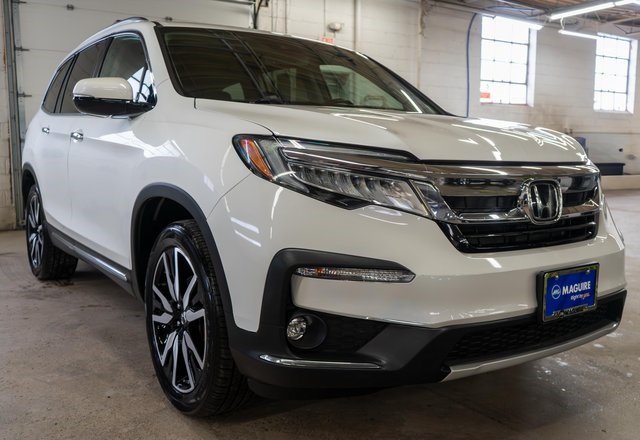 Recent Arrival! Local trade. 2022 Honda Pilot Touring 7 Passenger featuring standard all-wheel drive, heated 2nd-row captain's chairs, a 280-hp 3.5L V6 engine, and a 9-speed automatic transmission. It offers advanced, luxurious features including a rear entertainment system, hands-free power liftgate, panoramic sunroof, heated steering wheel, and a navigation system. AWD. 19/26 City/Highway MPG Doing business with Maguire means you'll always get the best possible value. Pre-owned Peace of Mind Feel good about your pre-owned purchase with our 30-day exchange policy. Lowest Up-Front Price We'll beat any advertised price in upstate New York. Worry-Free Assurance If a life event negatively affects your finances within the first year... Return your vehicle worry-free!