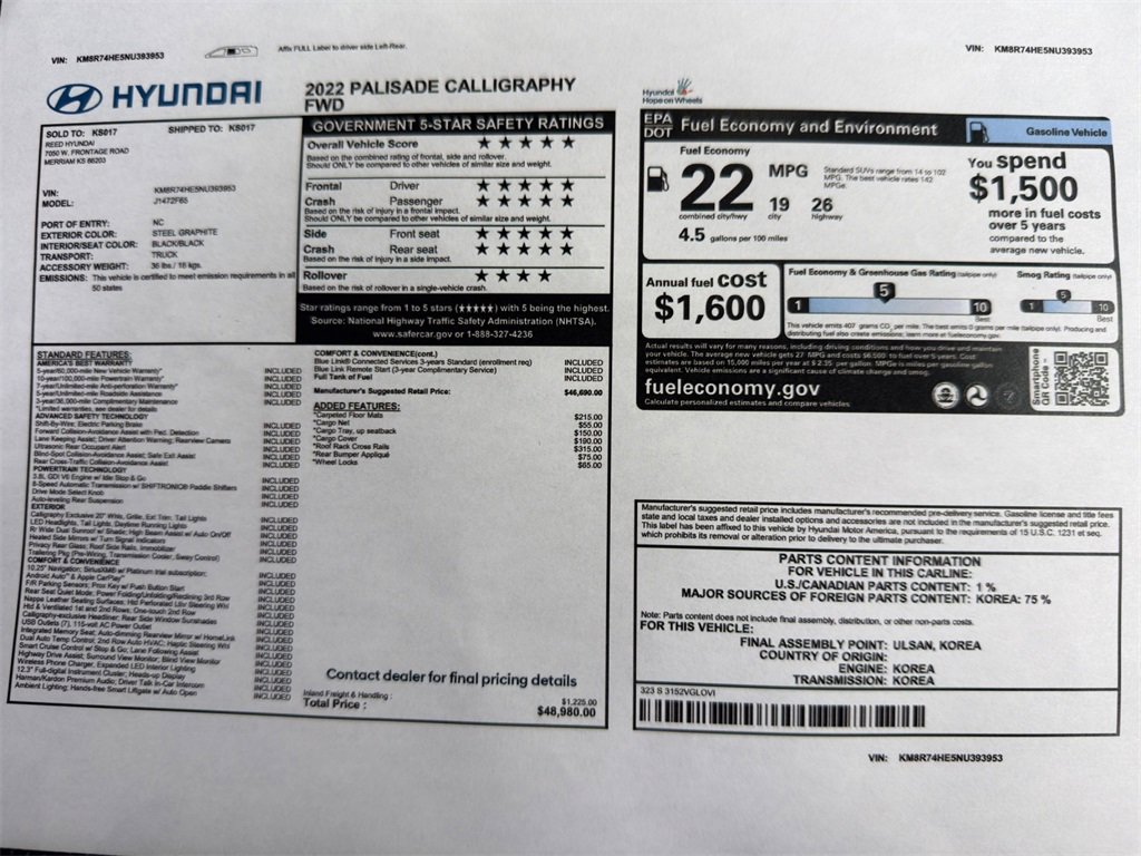 SOLD - Used 2022 Hyundai Palisade Calligraphy