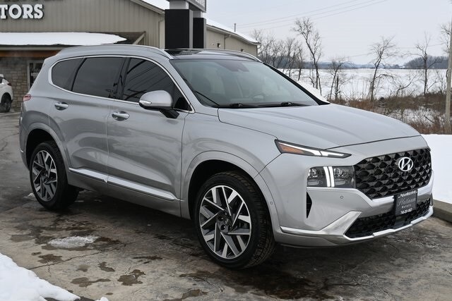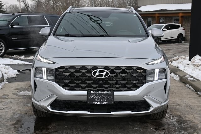 Clean CARFAX. AWD, Leather. 2022 Santa Fe Hyundai Calligraphy I4 Shiftronic AWD Shimmering Silver Pearl. Recent Arrival! 21/28 City/Highway MPG. Platinum Motors LLC offers their customers competitively priced vehicles and service with a smile. Their friendly and experienced staff will help you find a vehicle that fits your budget and lifestyle. Call to schedule a test drive!