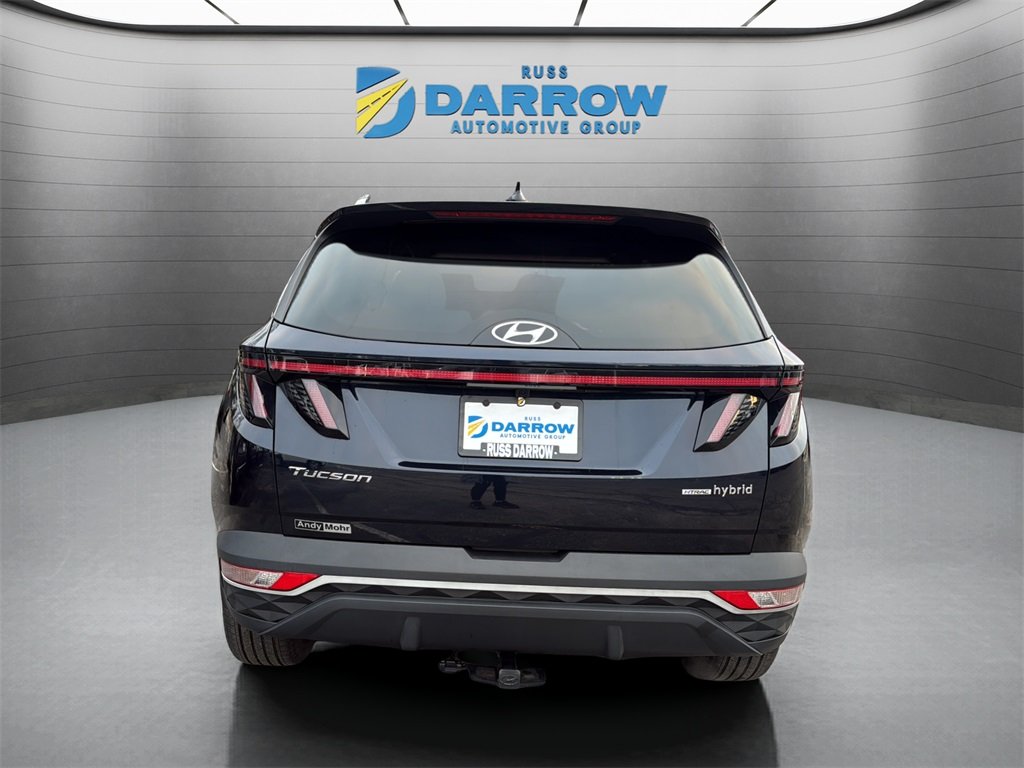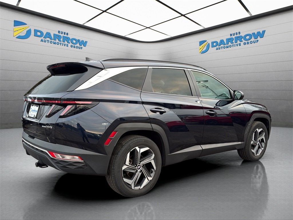 2022 Hyundai Tucson Hybrid SEL Convenience Recent Arrival! Deep Sea I4 6-Speed Automatic AWD Bluetooth connection for mobile phone, power liftgate, power sliding sunroof/moonroof, rear back-up camera with display, Android Auto & Apple CarPlay, heated front seats, automatic temperature control, electronic stability control, front dual zone A/C, heated door mirrors, power door mirrors, power driver seat, remote keyless entry, steering wheel mounted audio controls, telescoping/tilt steering wheel, and tow hitch. Odometer is 21455 miles below market average! Includes exclusive membership status in the Russ Darrow Rewards Program. Earn points for every dollar spent on goods and services at any Russ Darrow location, plus extra points if purchasing packages with the Finance office. Use these points on your next new or used vehicle purchase at any Russ Darrow Dealership. You will earn $10 for every 1,000 points redeemed, up to a maximum redemption of $500 per transaction. For more detailed information visit russdarrowrewards.com.