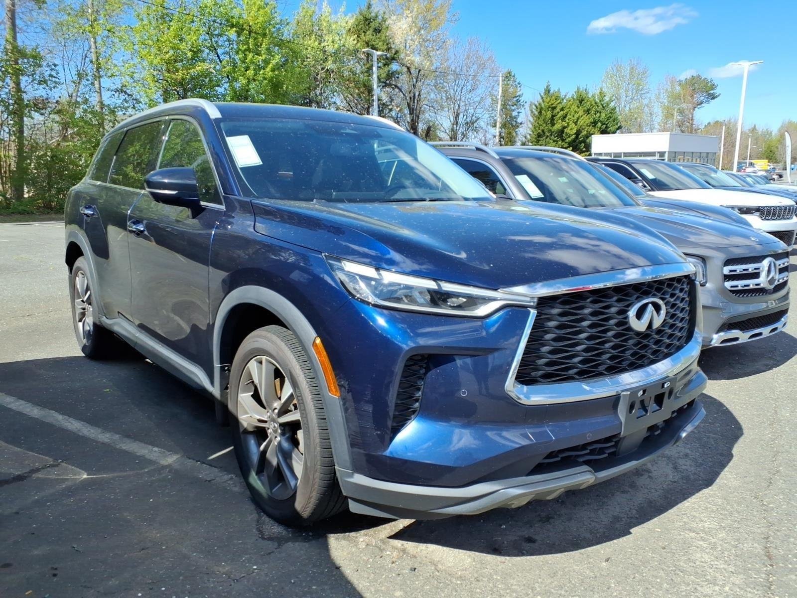 This 2022 INFINITI QX60 LUXE, has a Grand Blue exterior and a Graphite interior color. 58,141 miles. Stock Number P11500. You can connect with us by calling (803)396-1000. This vehicle is offered by Stateline Alfa Romeo and we are located at 800 Gold Hill Rd., Fort Mill SC 29708. At Stateline Alfa Romeo, we're here to Serve you! Our staff is 100% dedicated to customer satisfaction and we understand that you need clear, transparent information throughout the car buying process. With our live market pricing philosophy, we offer the right cars at the right price, and the transparency to back it up! Mills Auto Group has locations in and near Goldsboro, NC 27534 - Pineville, NC 28134 - Fort Mill, SC 29708 - Columbia, SC 29210 - Smithfield, NC 27577 - Shelby, NC 28152 - Sanford, NC 27332 - Mount Hope, WV 25880 - Wilkesboro, NC 28659 - Henderson, NC 27537 - Gastonia, NC 28056 to make your experience amazing!
